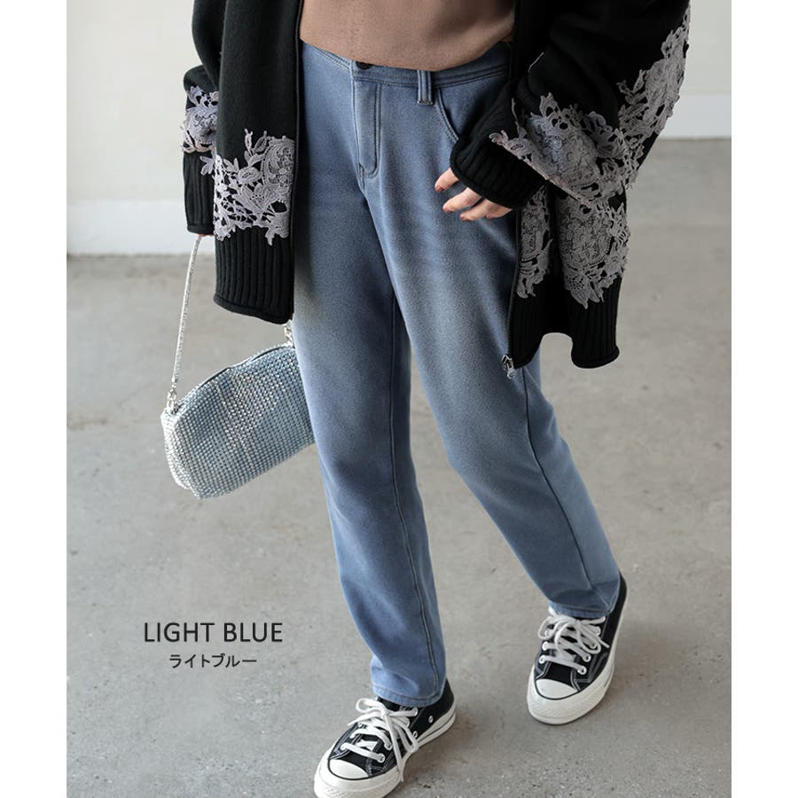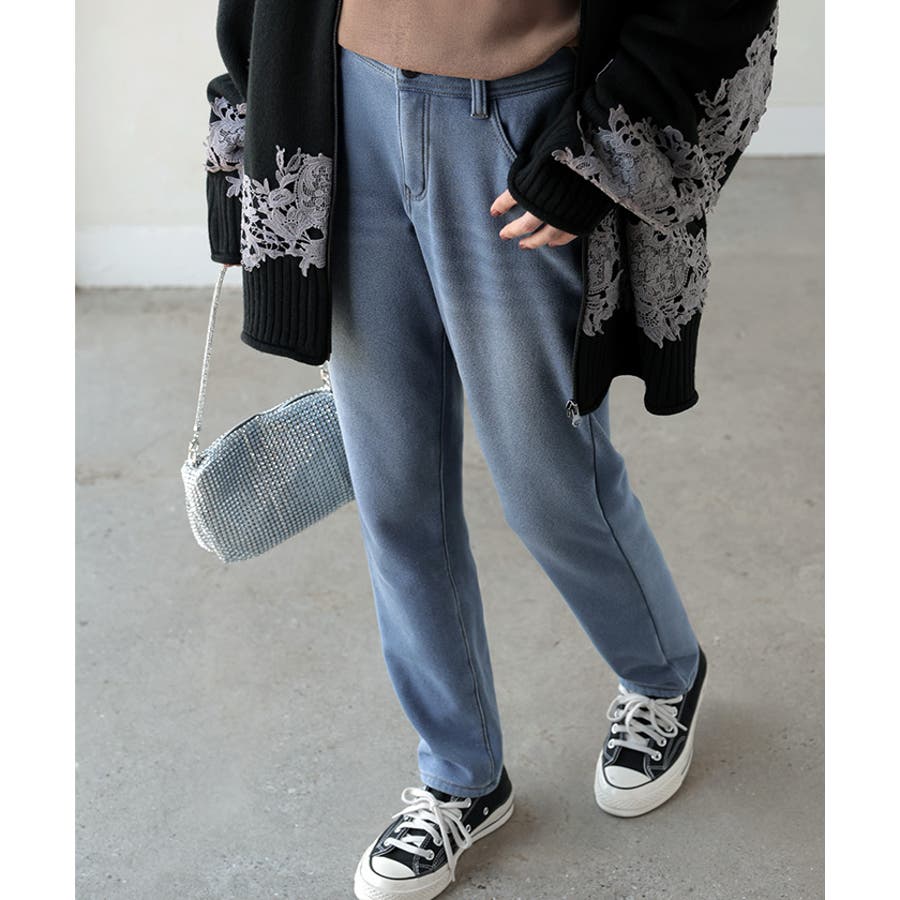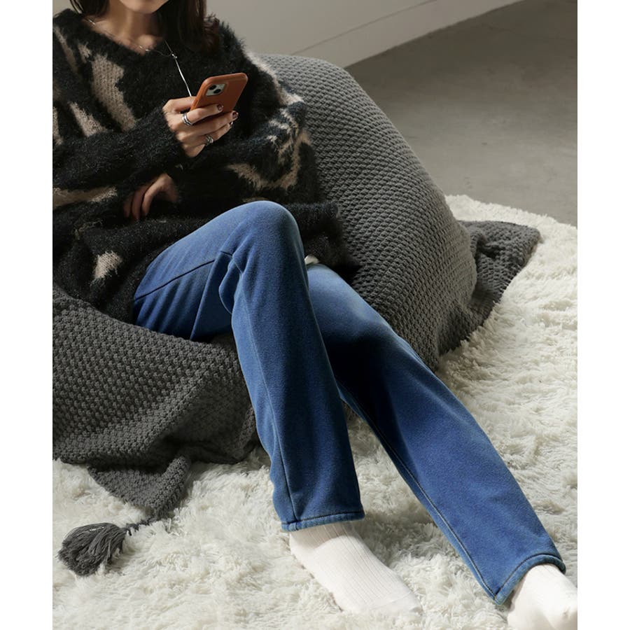 裏シャギーの新感覚のあったかニットデニムパンツです。