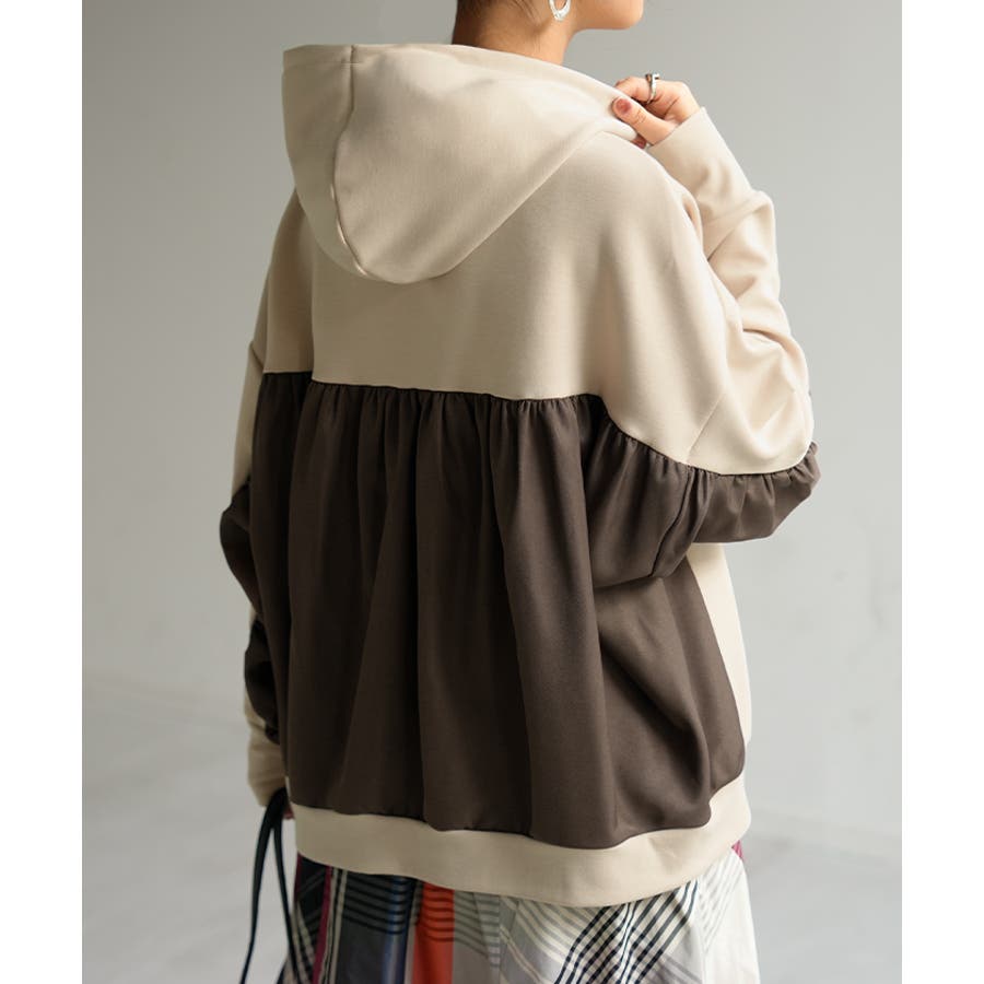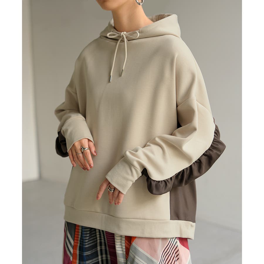 両脇の布帛切り替えデザインが特徴的なダンボール素材パーカーです。