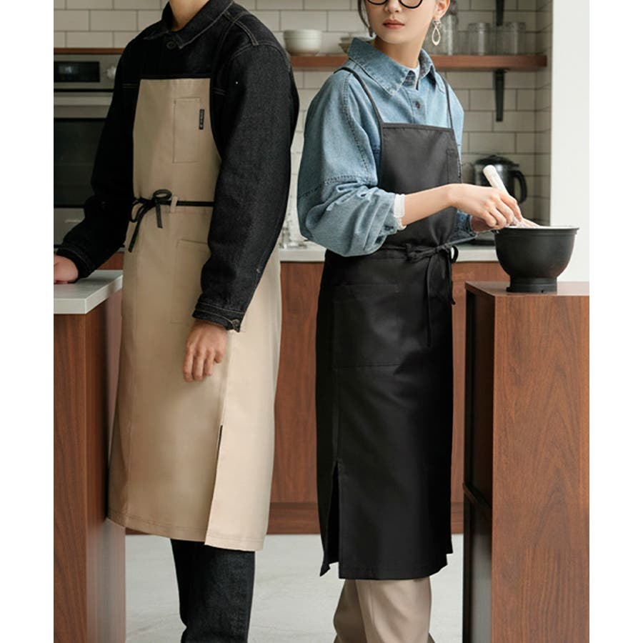 撥水加工がされたポリエステル素材のロングエプロンです。
