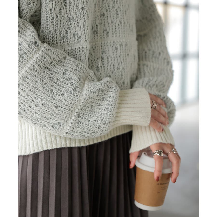 表側の柄編みから透けて覗くカラーの組み合わせた柄がこなれた印象◎。