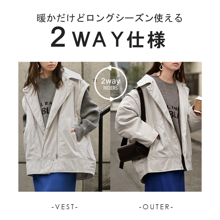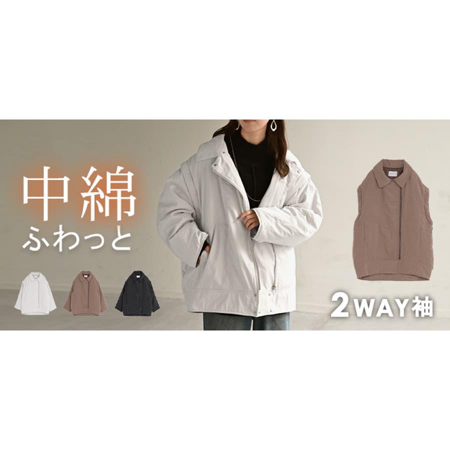 ベストとしても使える袖取り外し2WAYの中綿ブルゾンです。