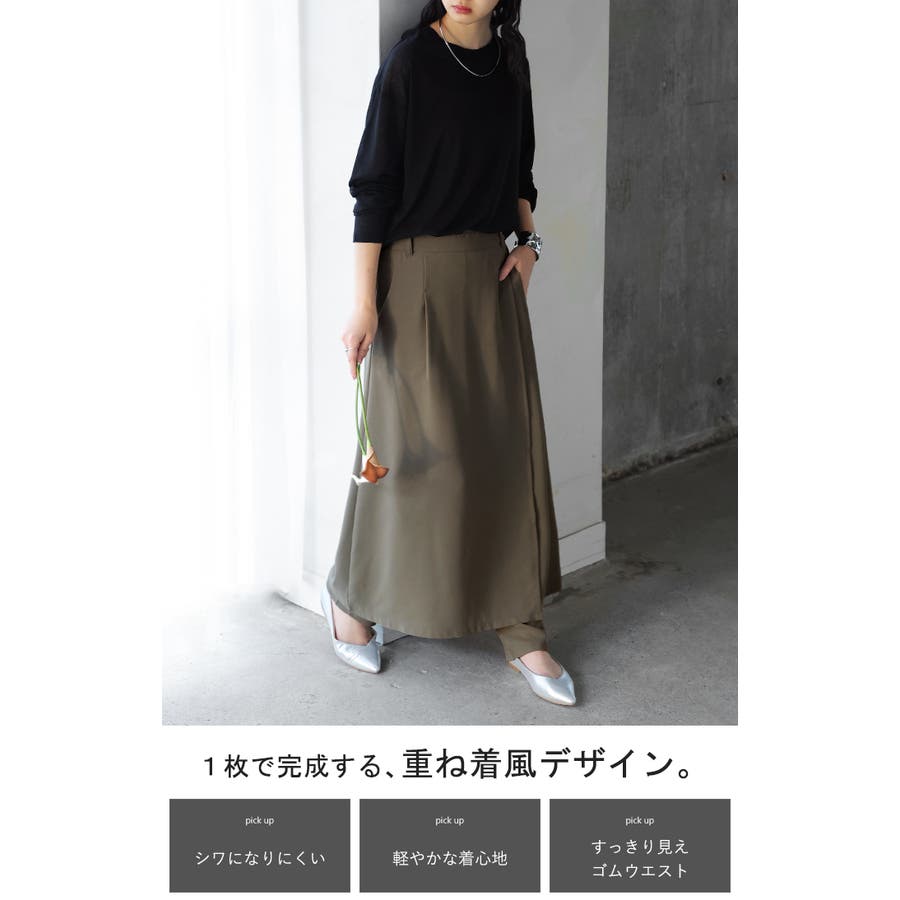 体型を選ばずバランス良く着こなせるスカートレイヤードデザインのパンツです。
