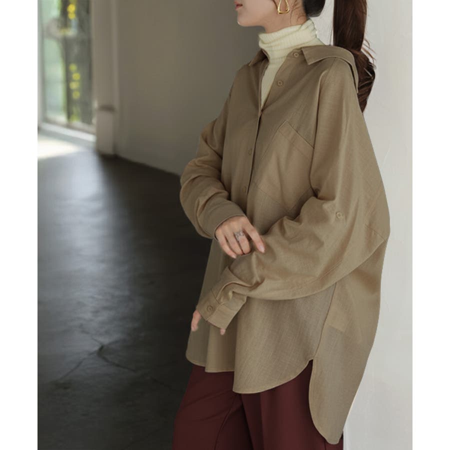 無地でシンプルの中にトレンド感を取り入れたシャツになっております。