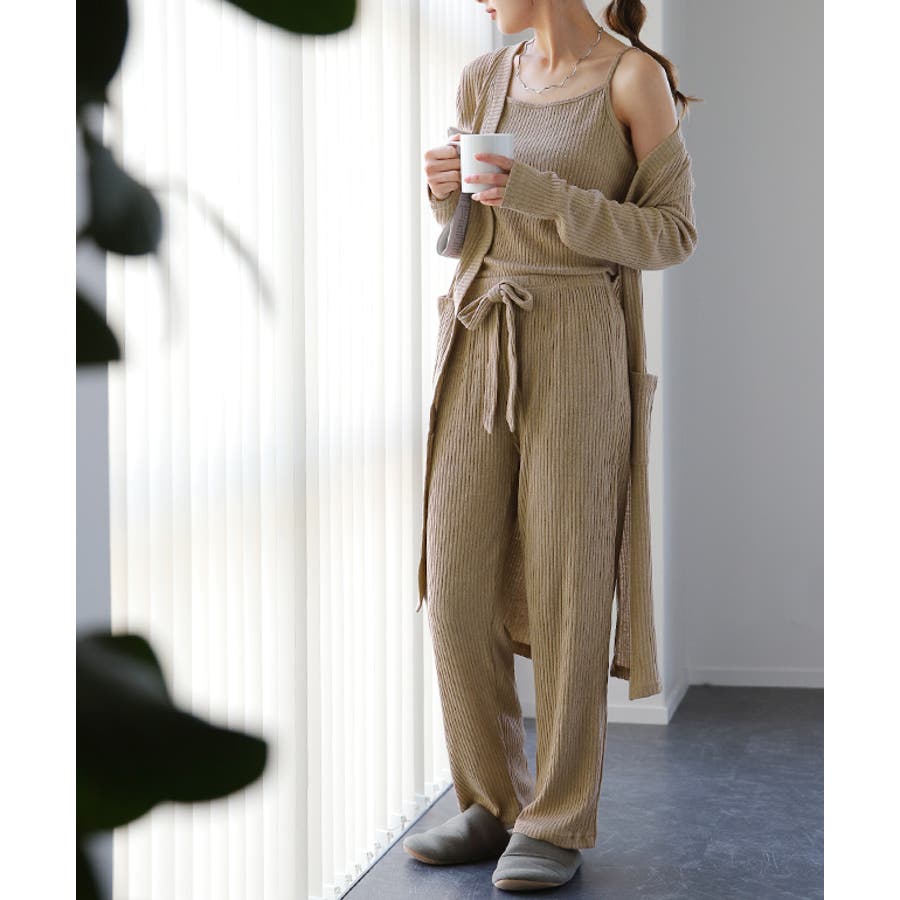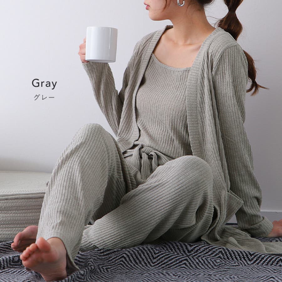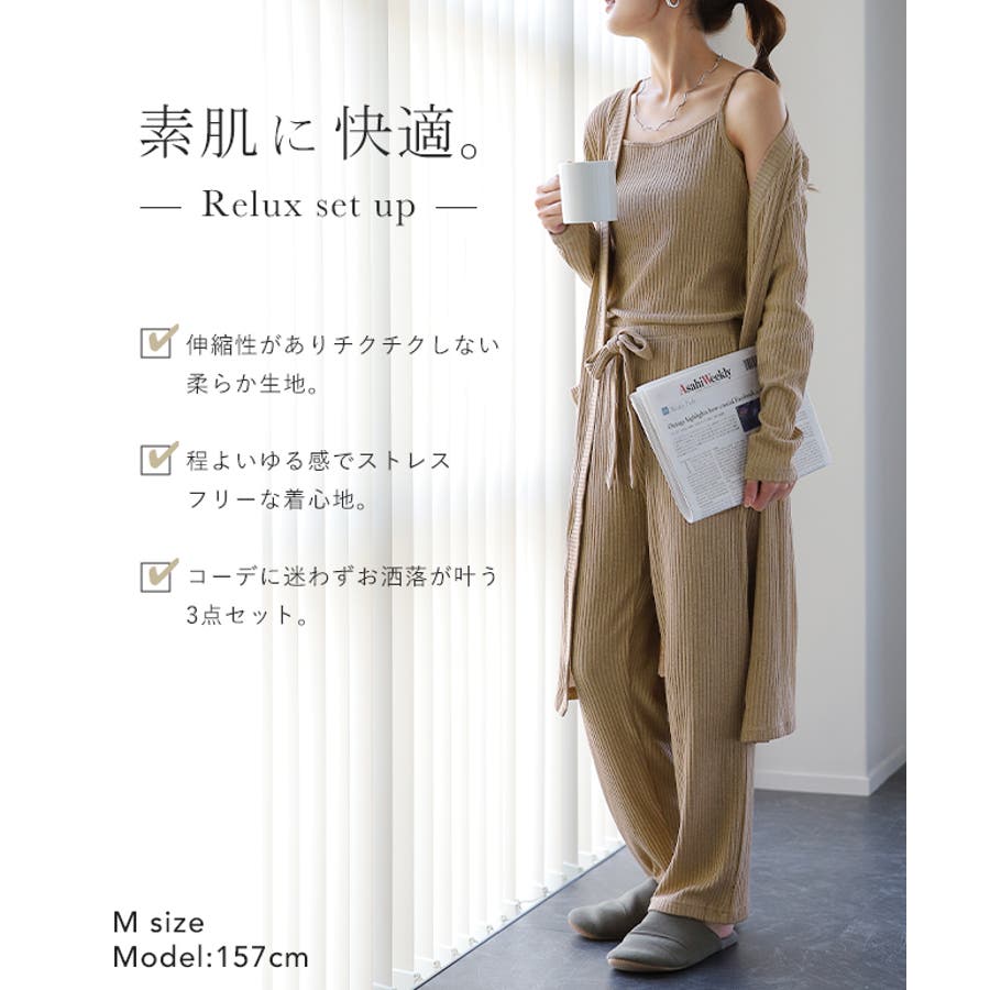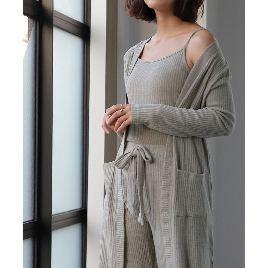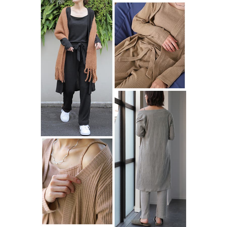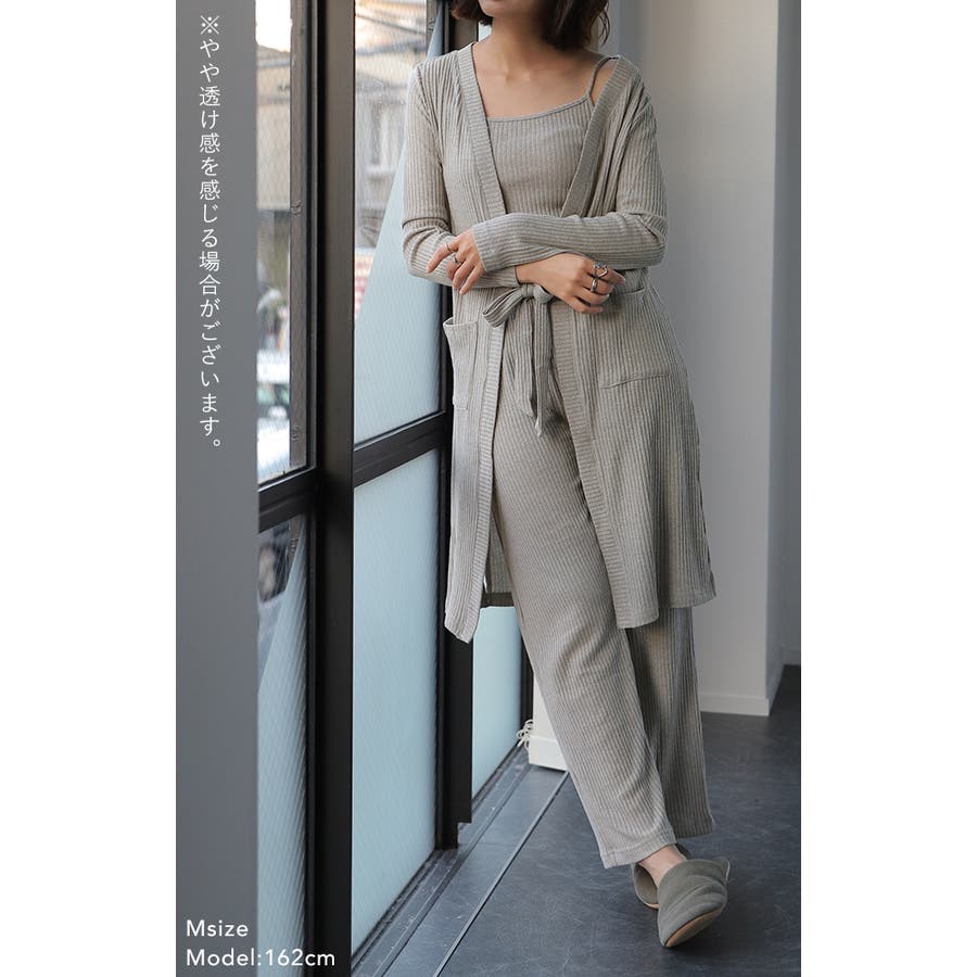 ルームウェア セットアップ 3点セット カーディガン キャミソール パンツ ロングカーディガン カーデ HS レディース 大きいサイズ プラスサイズ キャミ 部屋着 パジャマ 彼モテ S M L XL 2XL LL 2L 3L 黒 灰色 グレー キャメル ベージュ ブラック