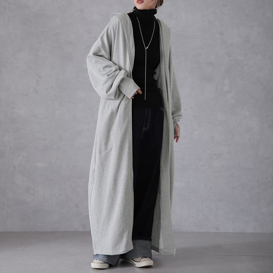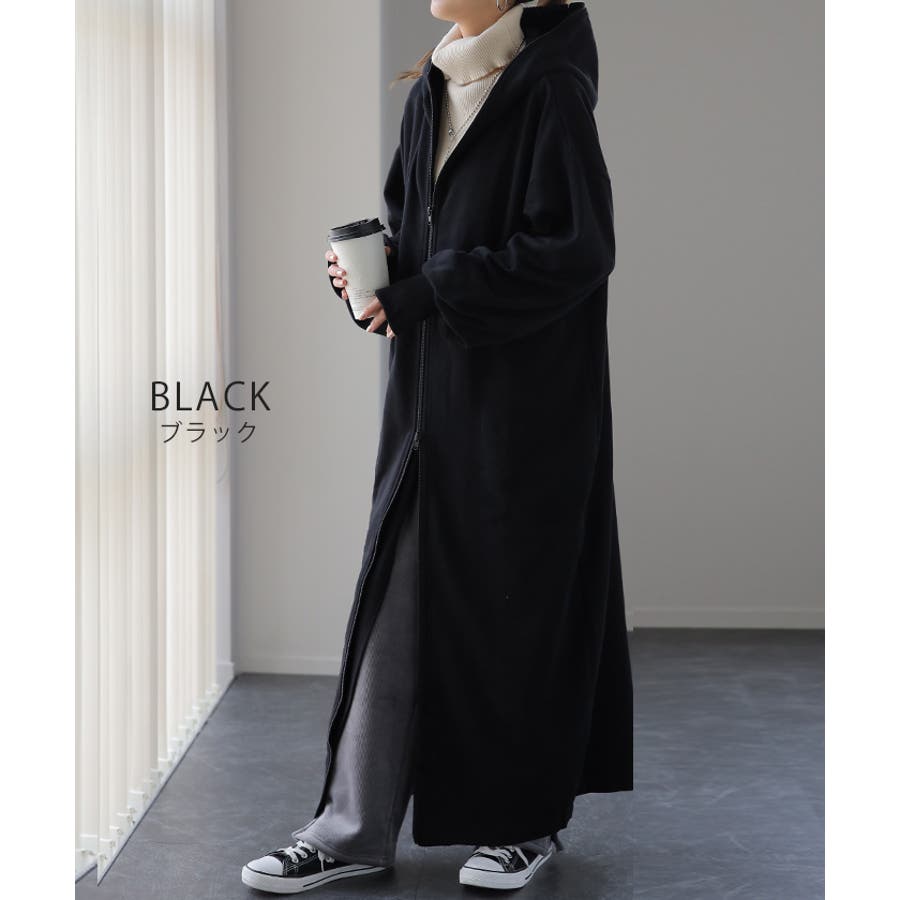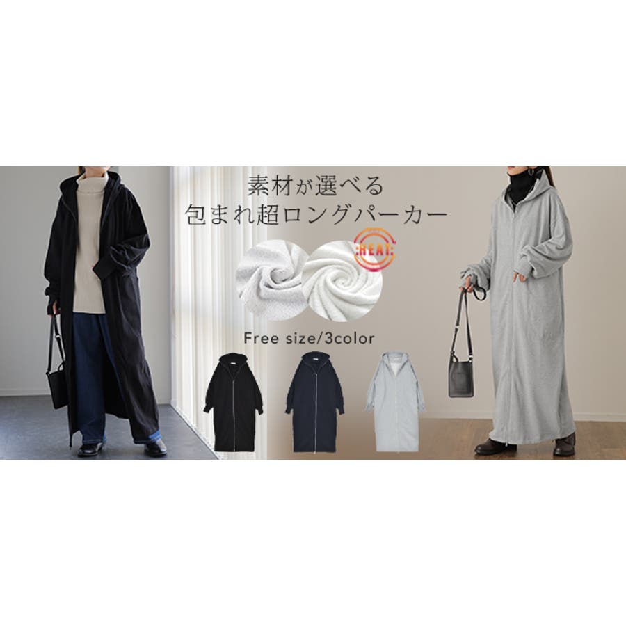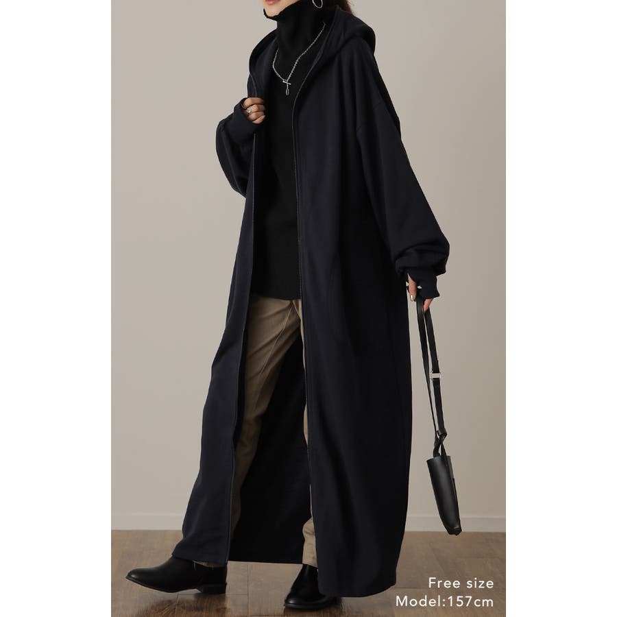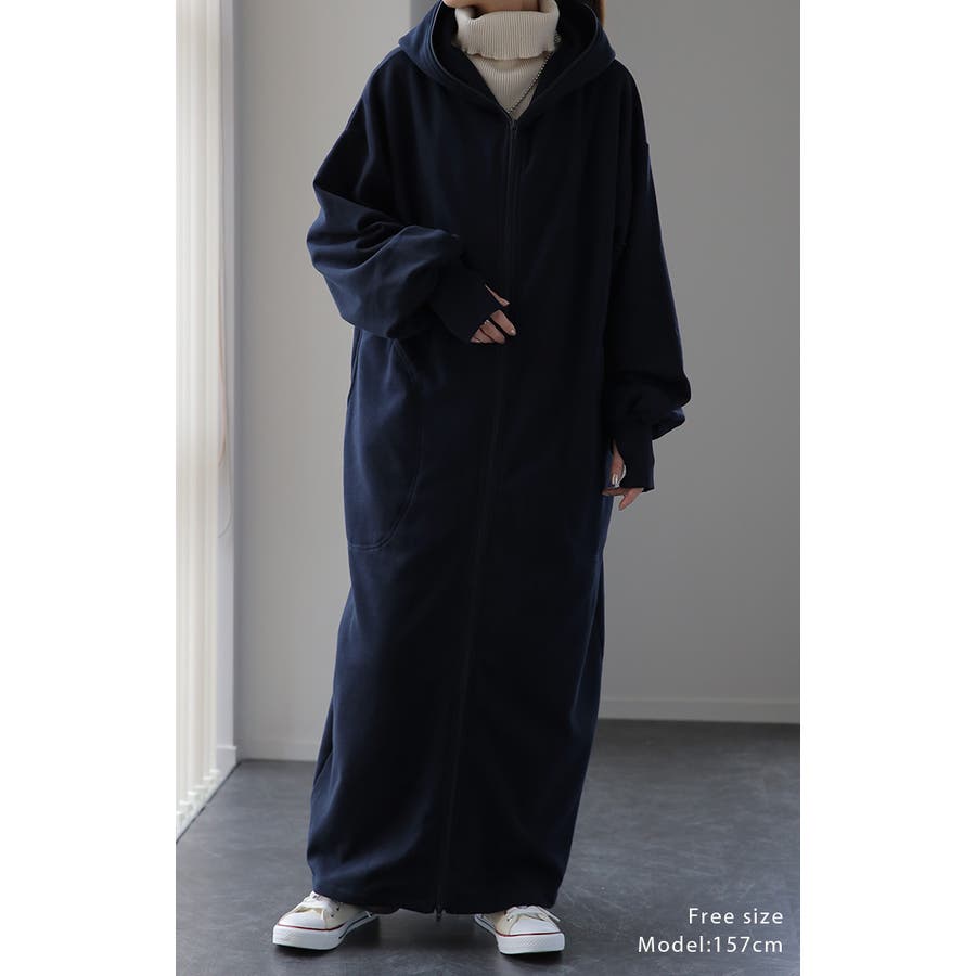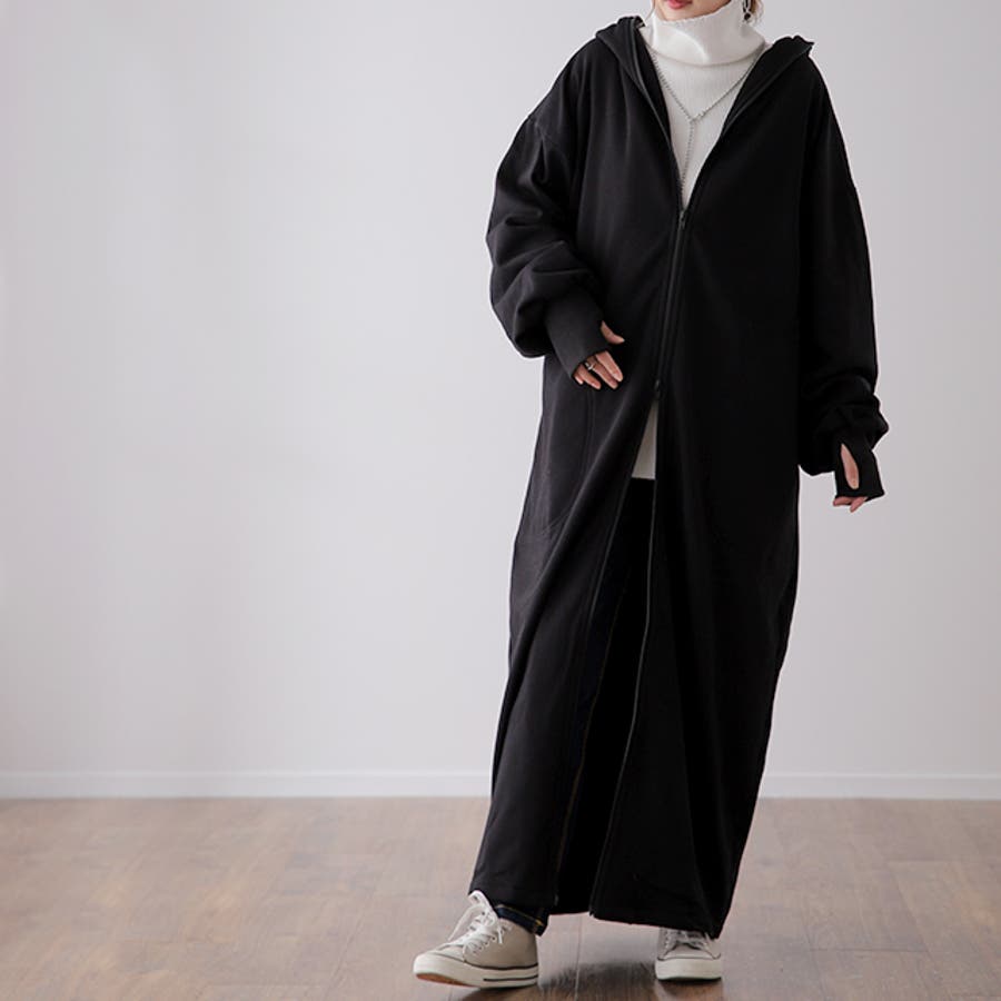 指穴パーカー フード ハイネック ダブルジップ フードコート マキシ 無地 シンプル 新作 ゆったり 秋冬 秋 冬 20代 30代 40代 50代 おしゃれ ブラック グレー ネイビー 黒 灰色 黒色 紺 紺色 フリーサイズ 大きいサイズ ビッグシルエット ビッグ スタンドカラー ボリュームネック 裏シャギー 極暖 ブルゾン 裏シャギー ジャケット リブ M L XL 2XL LL 2L 3L