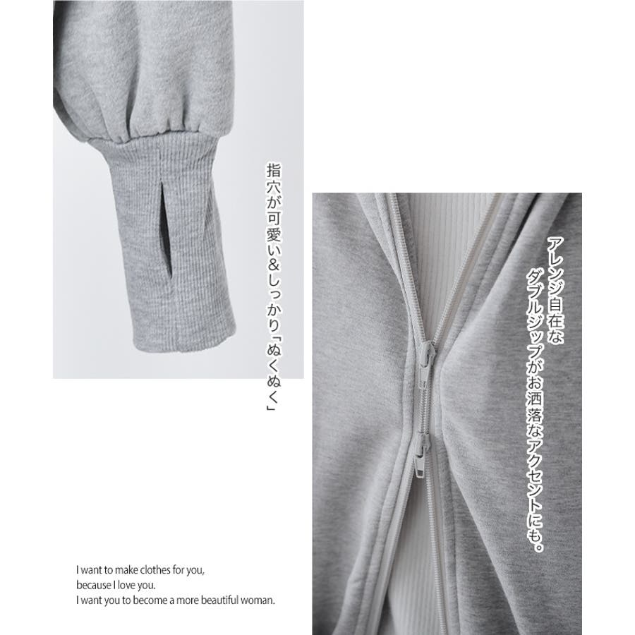 ダブルジップなので裾からボトムをちらっと見せてるのも可愛いです。