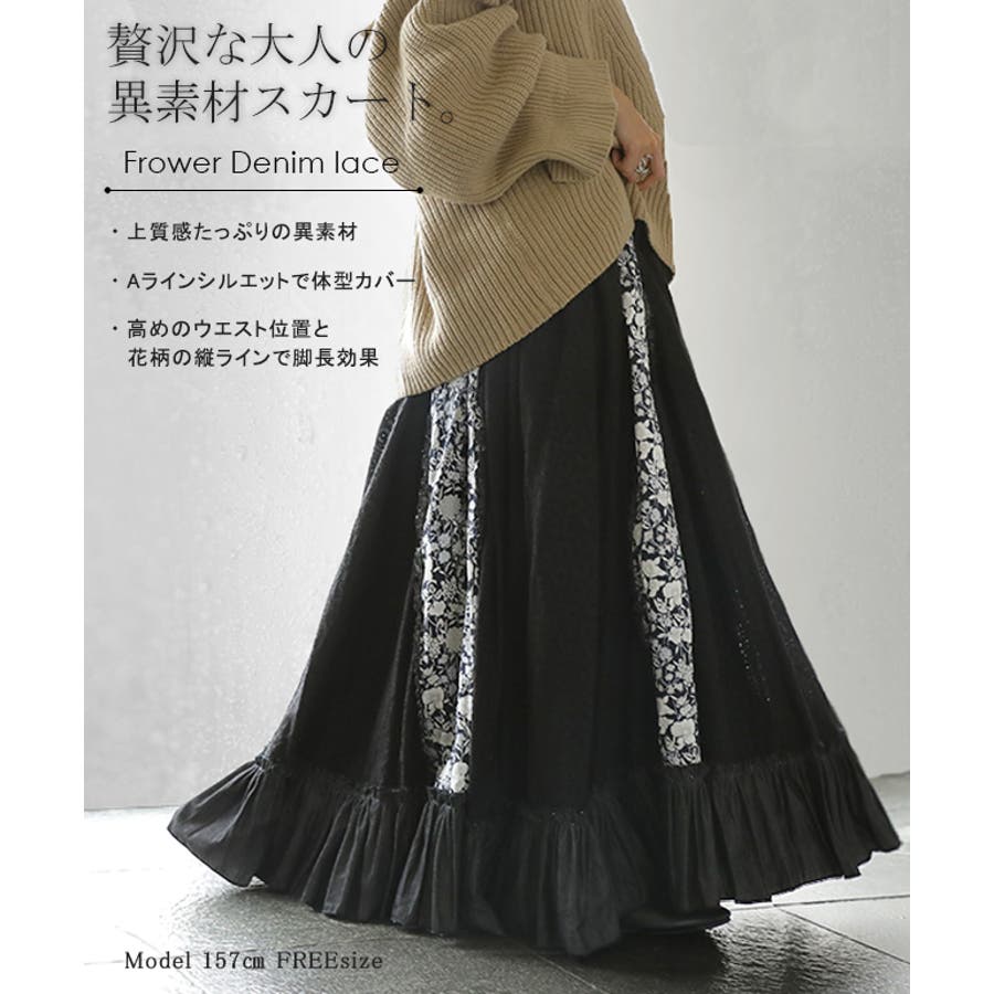 ロングスカート 花柄 スカート フリルスカート デニムスカート レーススカート