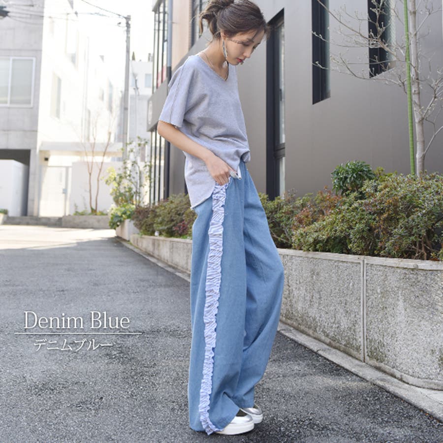 大きいサイズ対応 プラスサイズ 大きい 大きめ ボトムス ズボン ずぼん 長い ロング ロングパンツ ロングデニム セミワイドパンツセミワイド バギー デニムパンツ ウエストゴム ゴムウエスト ウェストゴム ゴムウェスト 古着風 ストレッチ 20代 30代 40代50代 おしゃれ オシャレ お洒落 可愛い かわいい カワイイ カジュアル フリルリボン ガーリー ライン 一本線 フレンチガーリー太め ゆったり ゆる ジーパン ブルー 青 水色 M L XL XXL 2XL 春 夏