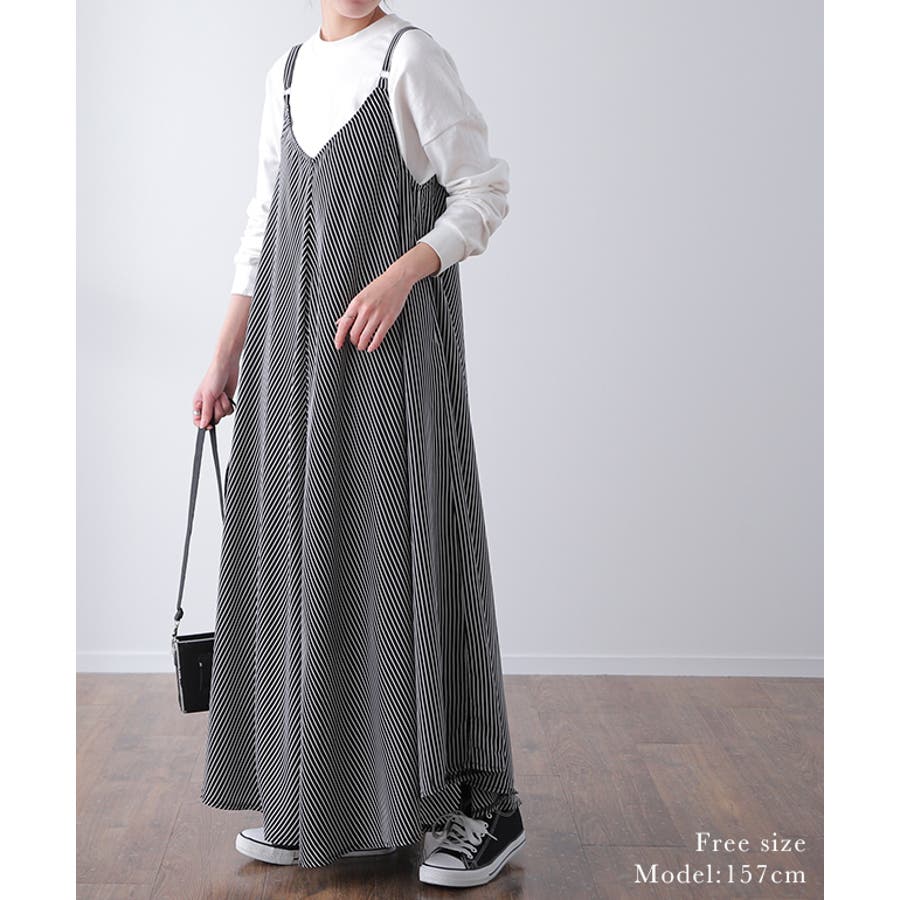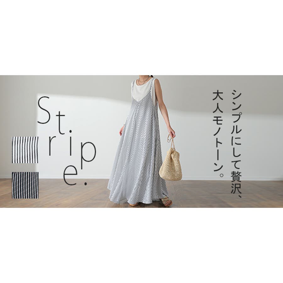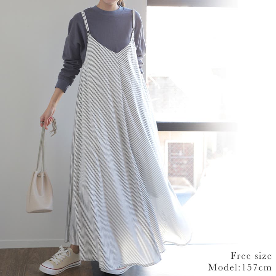 ワンピース レディース ロング ロングワンピース キャミワンピース ストライプ