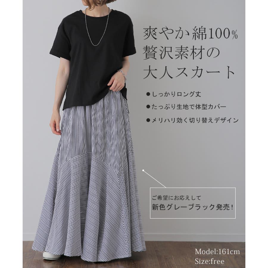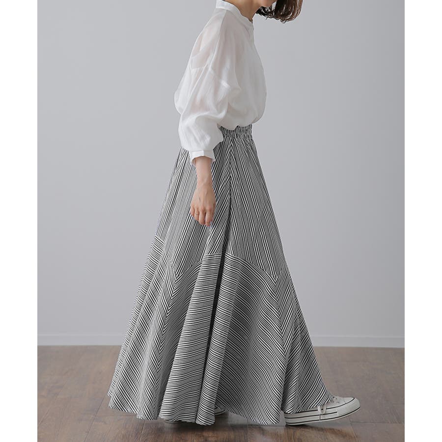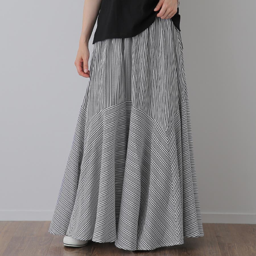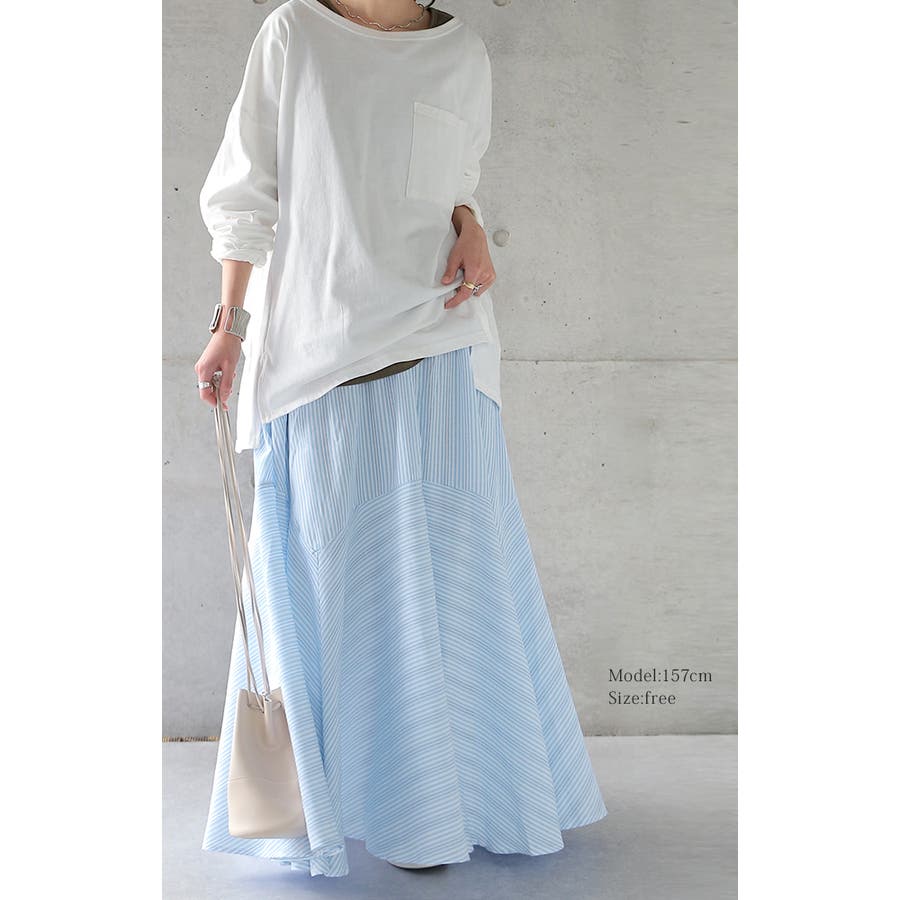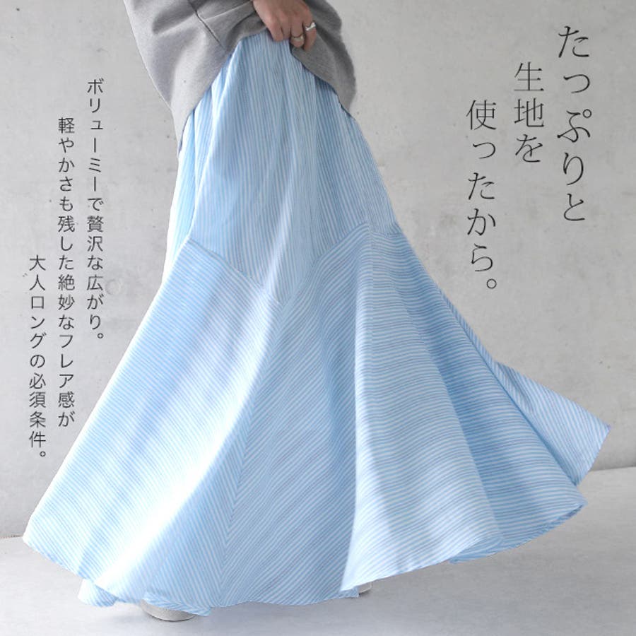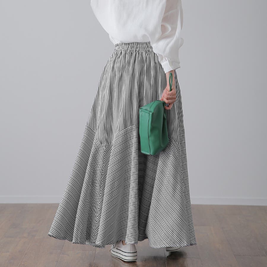 スカート トライプ ロングスカート コットン100% Aラインスカート レデ