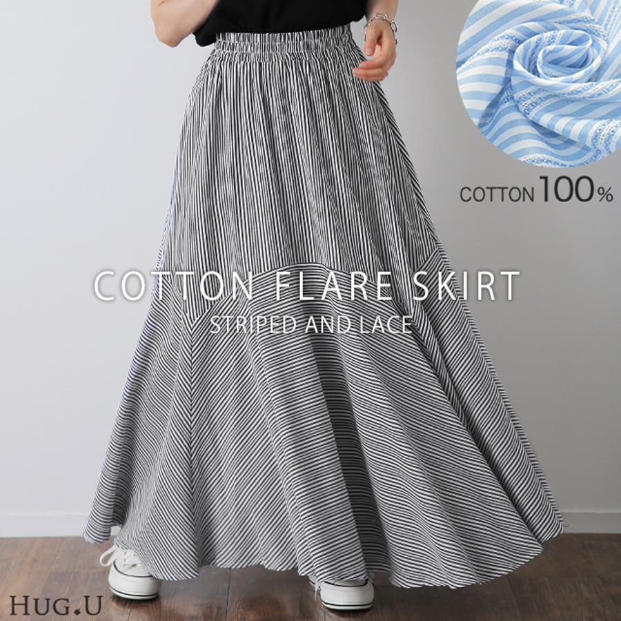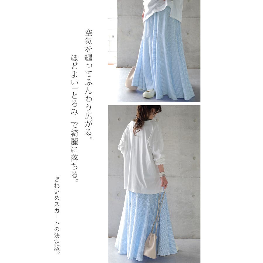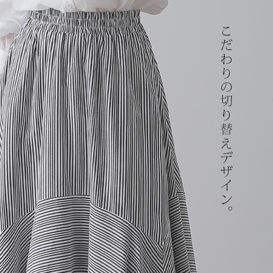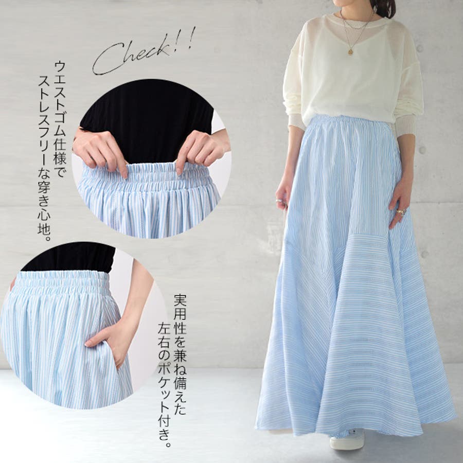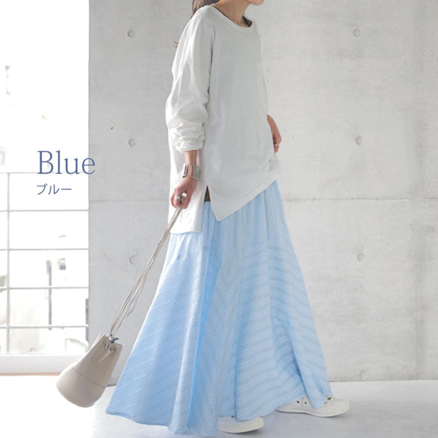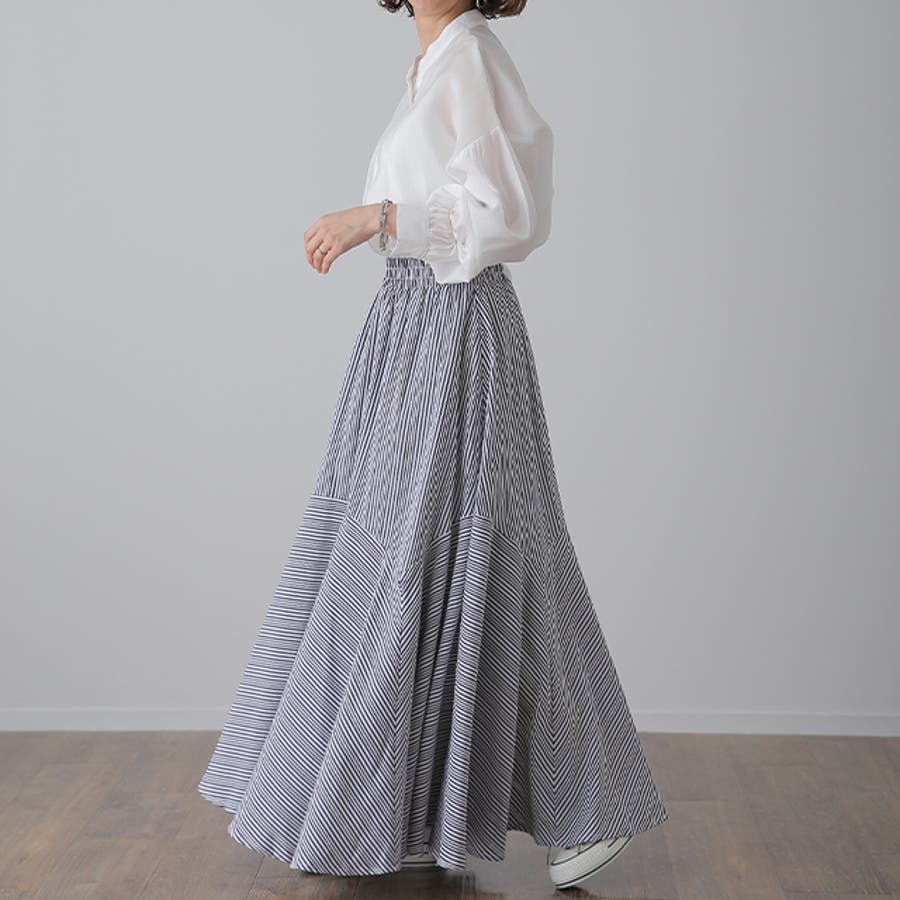 スカート トライプ ロングスカート コットン100% Aラインスカート レデ