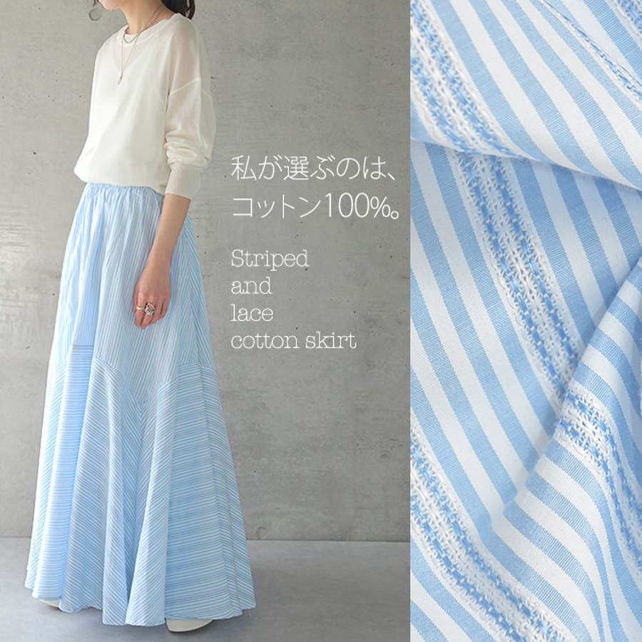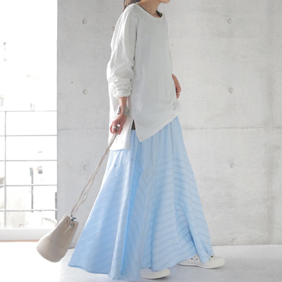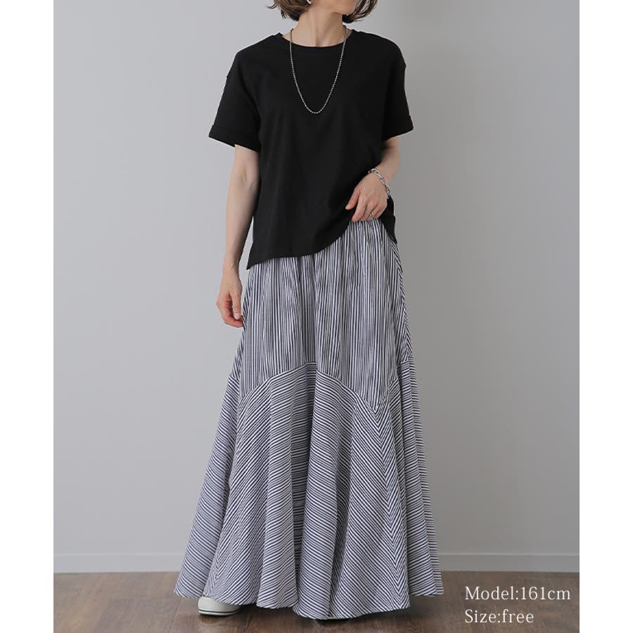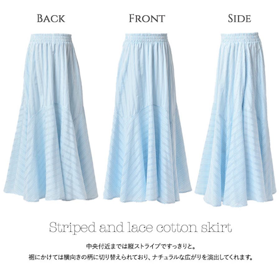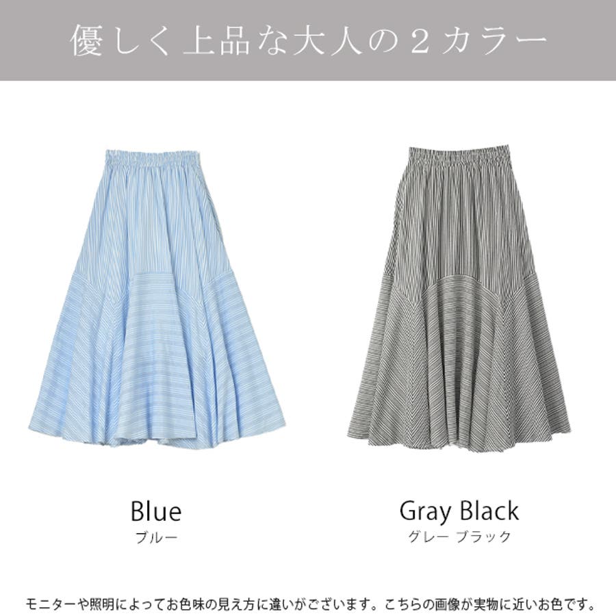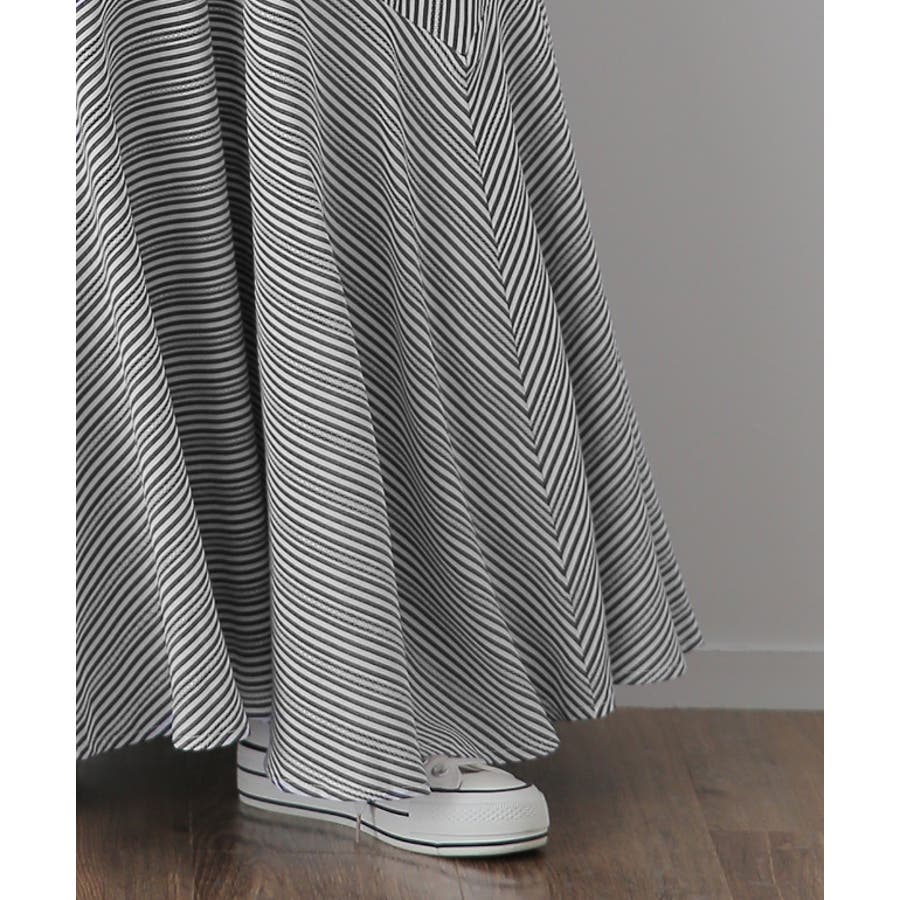 スカート トライプ ロングスカート コットン100% Aラインスカート レデ