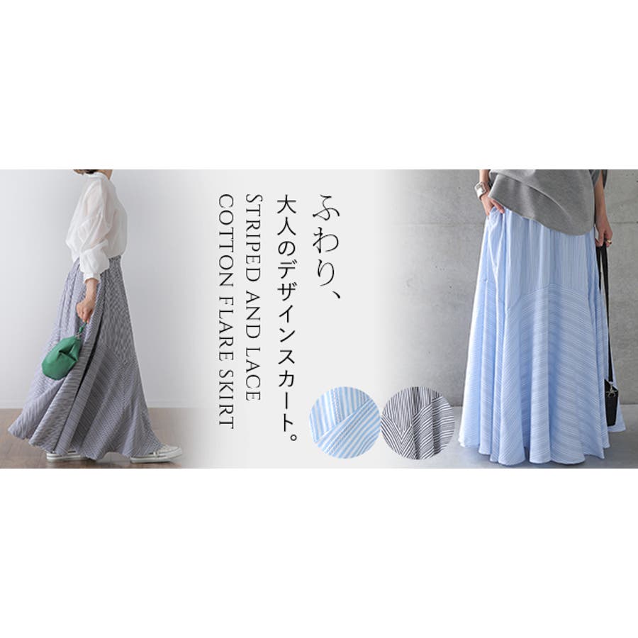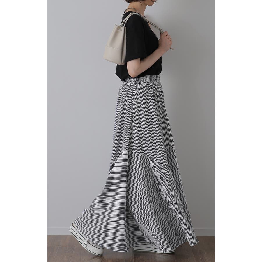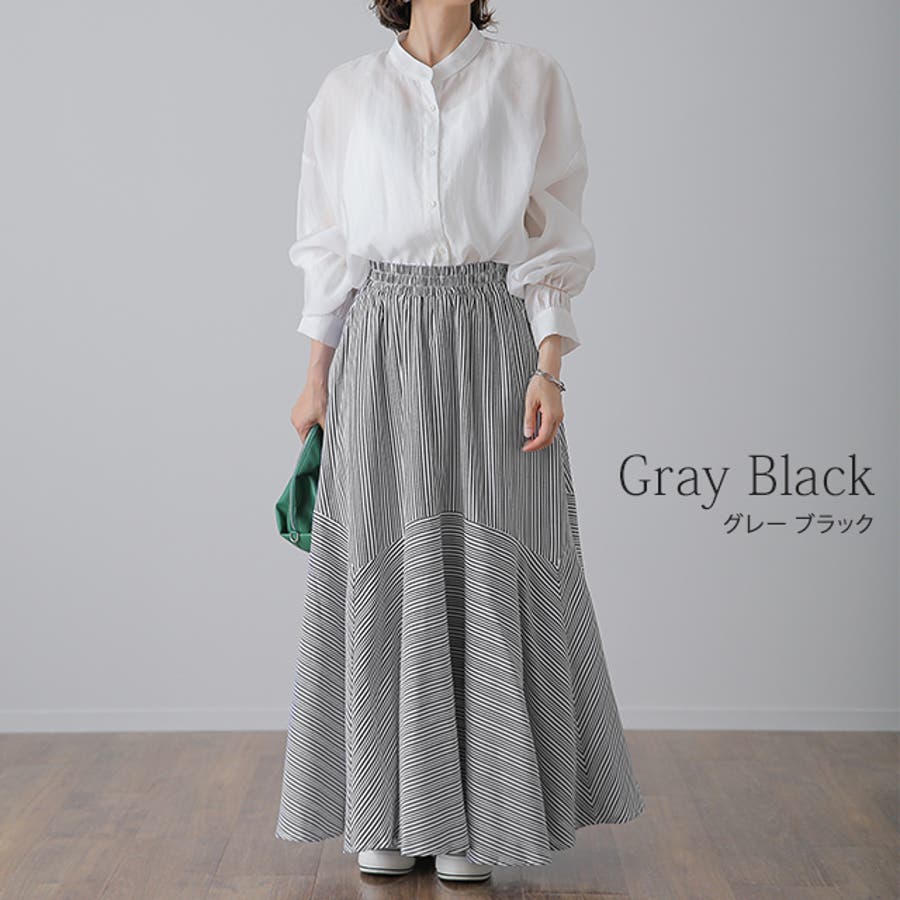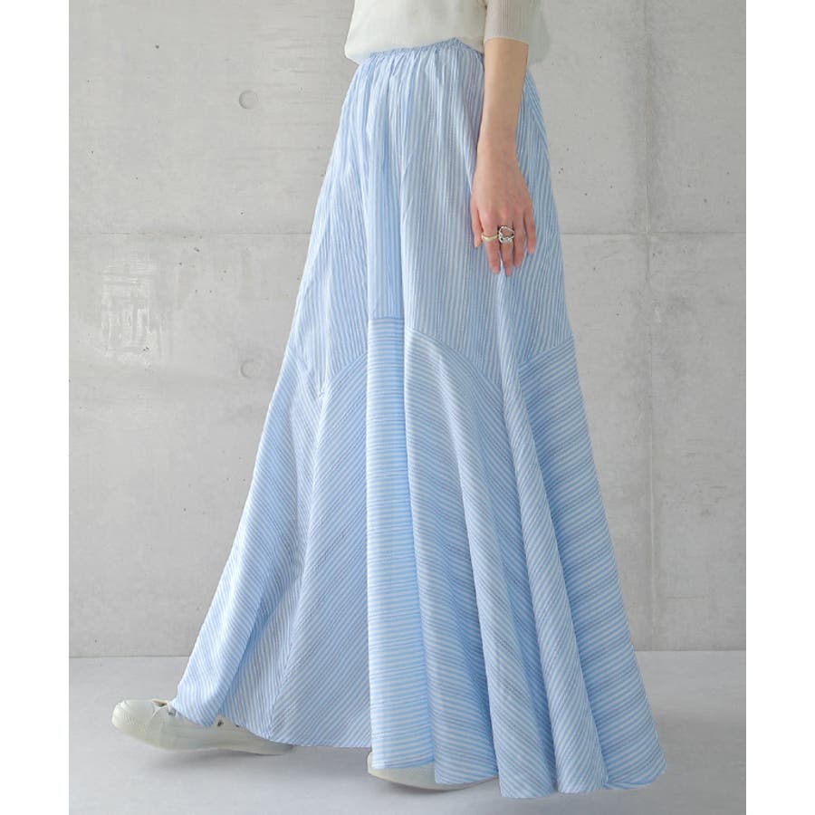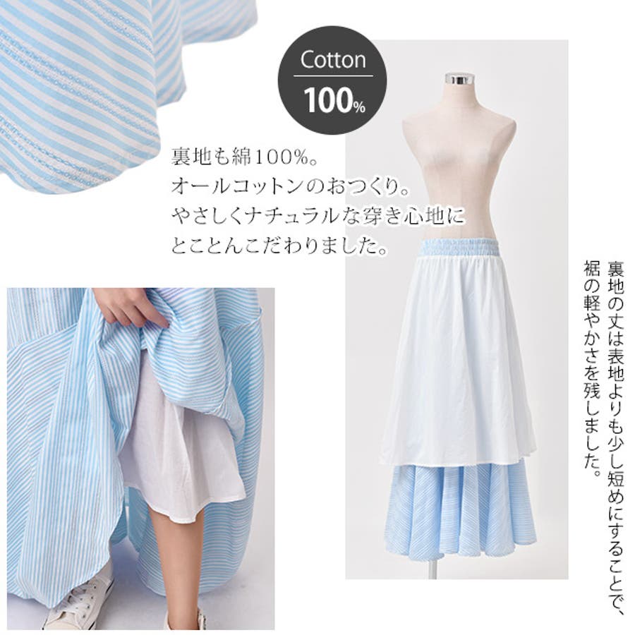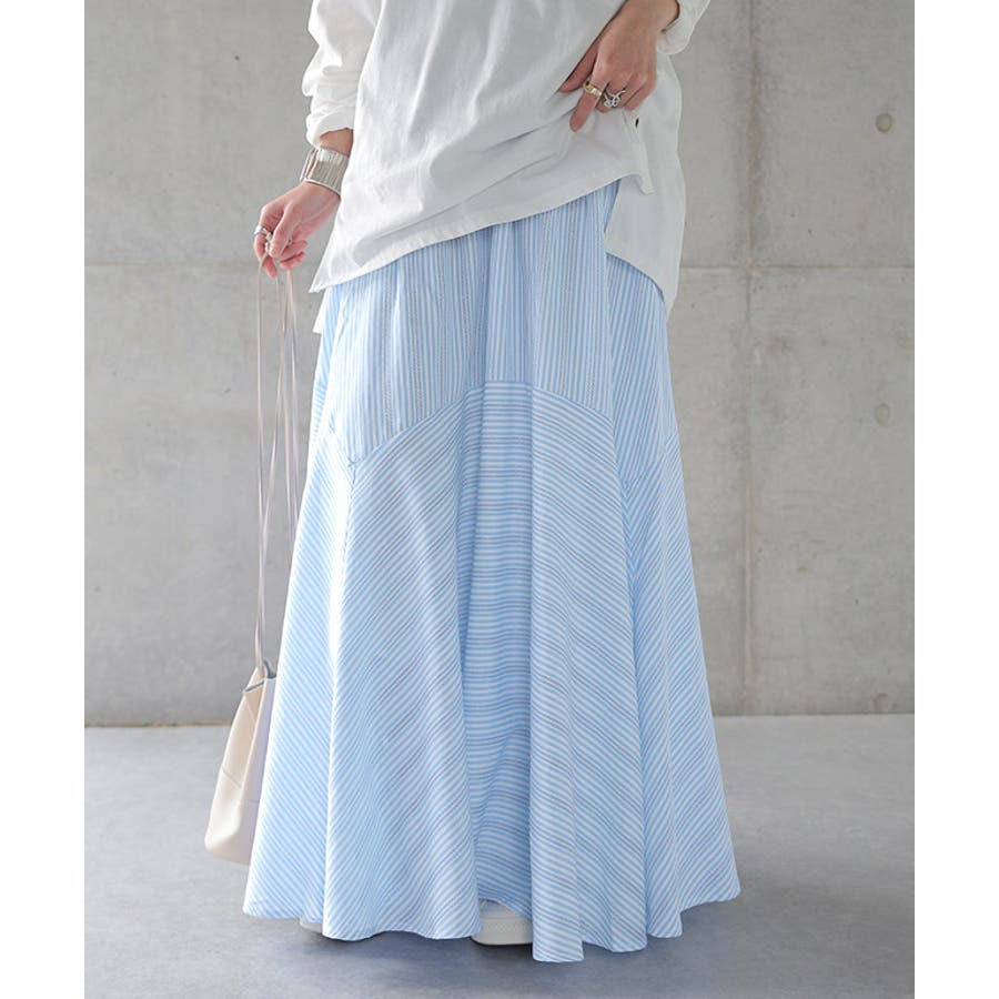 スカート トライプ ロングスカート コットン100% Aラインスカート レデ