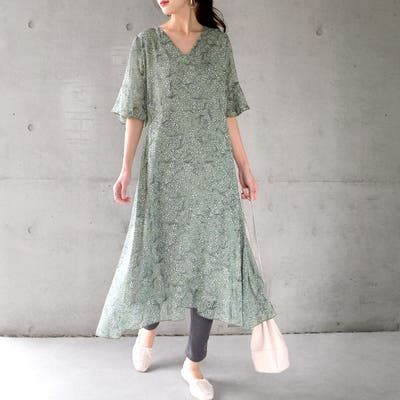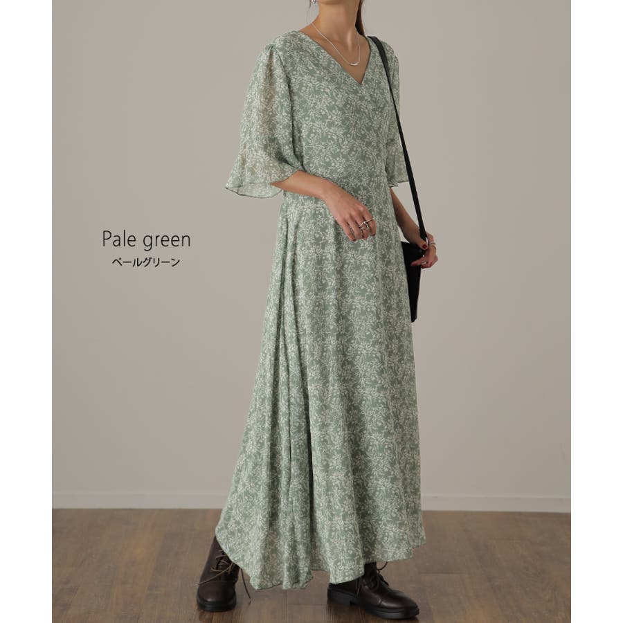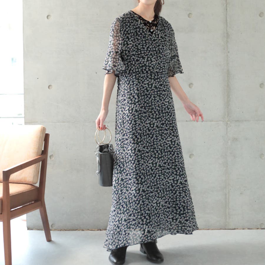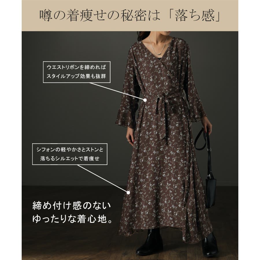 ワンピース シフォン 着痩せ ロングワンピース ロング ワンピ 花形 大きいサ