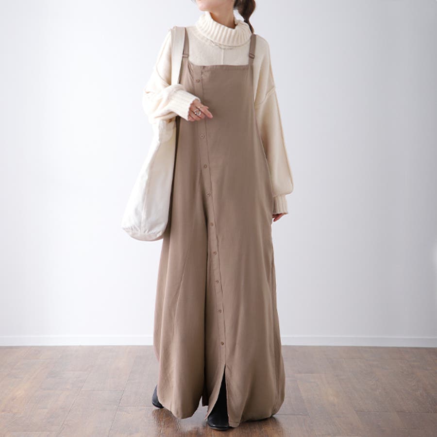 オシャレなシルエットが漂うナチュラルカラーのオールインワン。