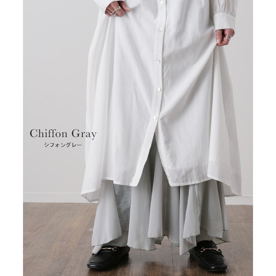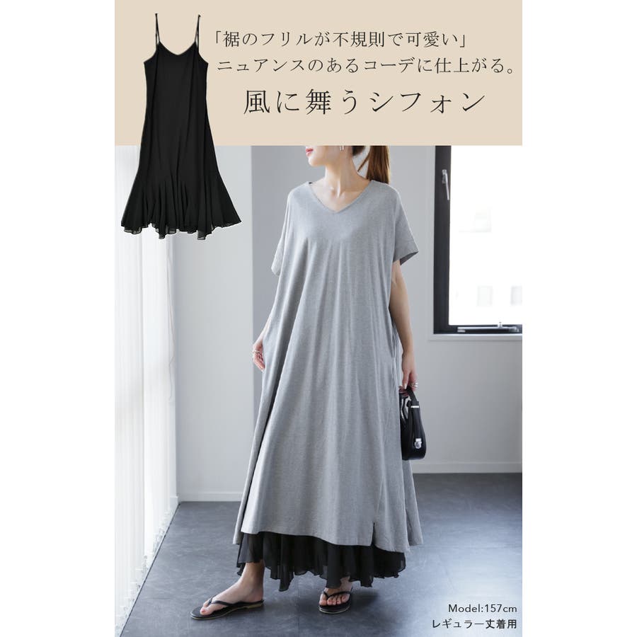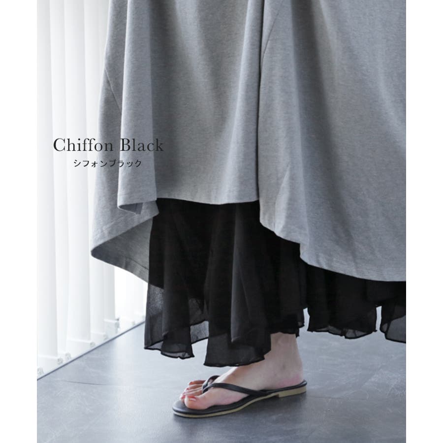 サラッとした肌ざわりのよいカットソー素材とひらひらとした裾シフォンの組み合わせで、