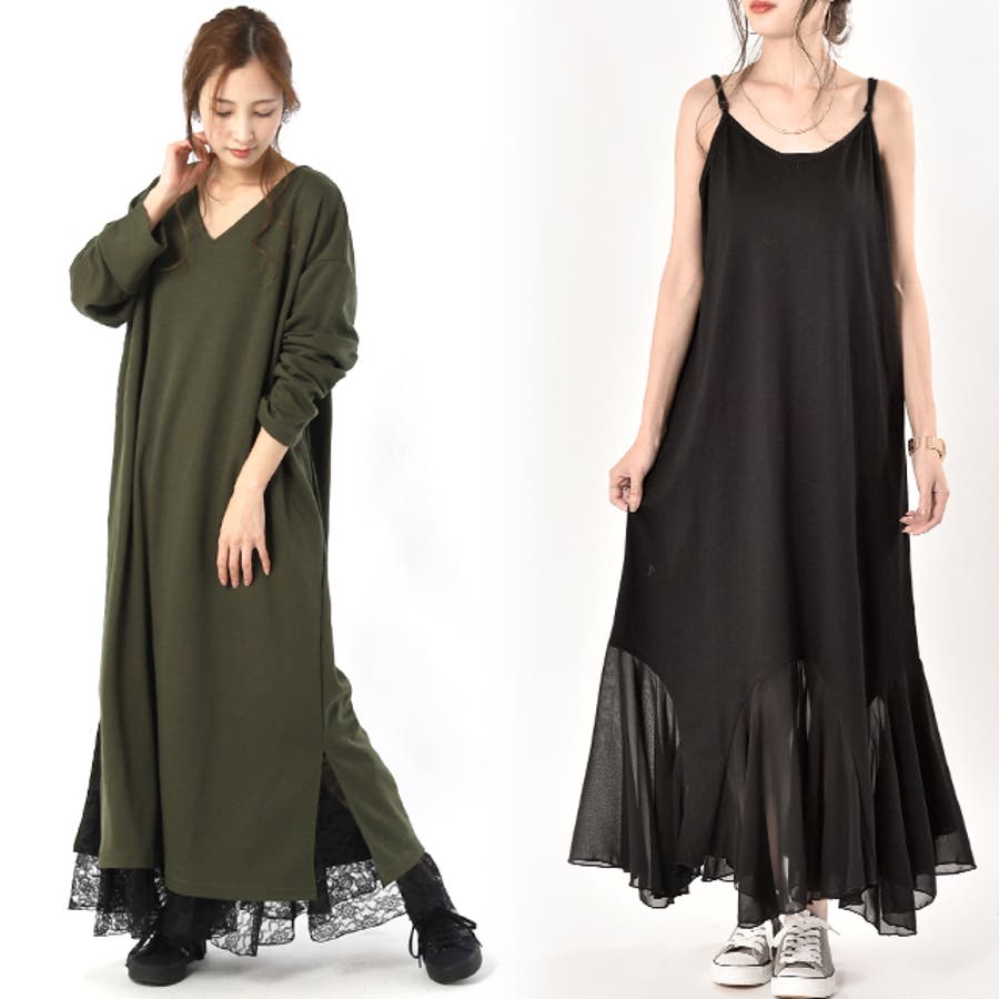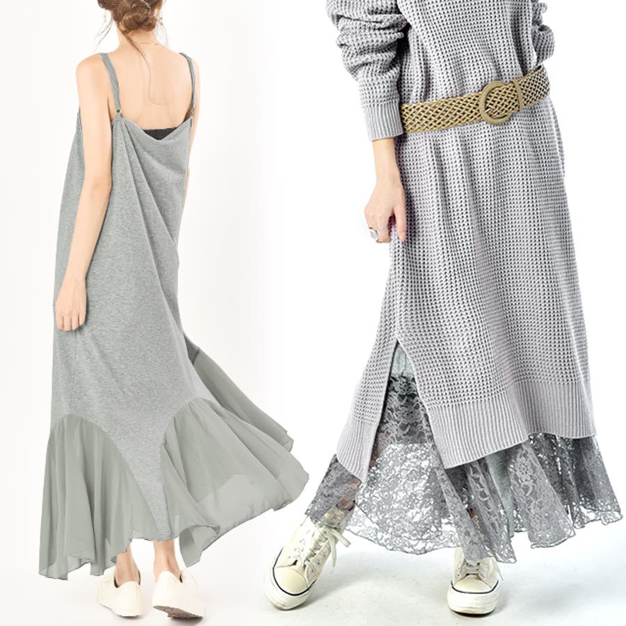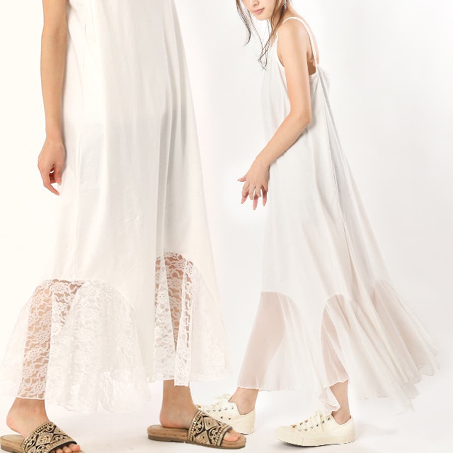 ワンピース レディース プリーツ レース ペチコート レイヤード キャミソー