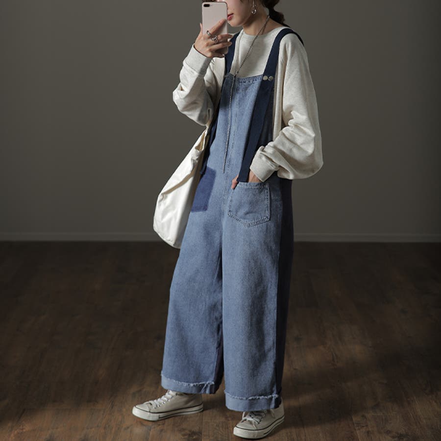 大きいサイズ対応 セレカジ 春 夏 春 春夏 春 20代 30代 40代 50代 おしゃれ お洒落 オシャレ 可愛い かわいいカワイイ フリーサイズ M L XL LL XXL 2L 3L ブルー 青 水色 ライトブルー デニムブルー 旅行 らくちん ラクチン簡単 綿 ゆる ゆったり 着痩せ コットン ズボン ずぼん ロールアップ ゆったり ゆる ウエストフリー 10分丈 女性 フリーサイズユーズド加工 ビックシルエット ビッグシルエット ビッグ レイヤード オーバーサイズ ワンピース ポケット シンプル 無地ジャンプスーツ ロンパース コンビネゾン 大人可愛い ワイド ビック 調節可能 キレイめ ズボン ずぼん ロンパース ジャンプスーツワイド オールドテイスト 古着風 ロールアップ ゆったり