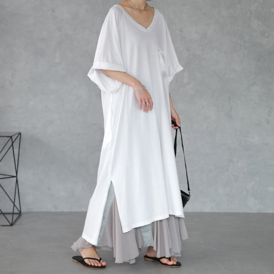 【ホワイト】ワンピース Tシャツワンピース ロングワンピース マキシワンピース ロング レ