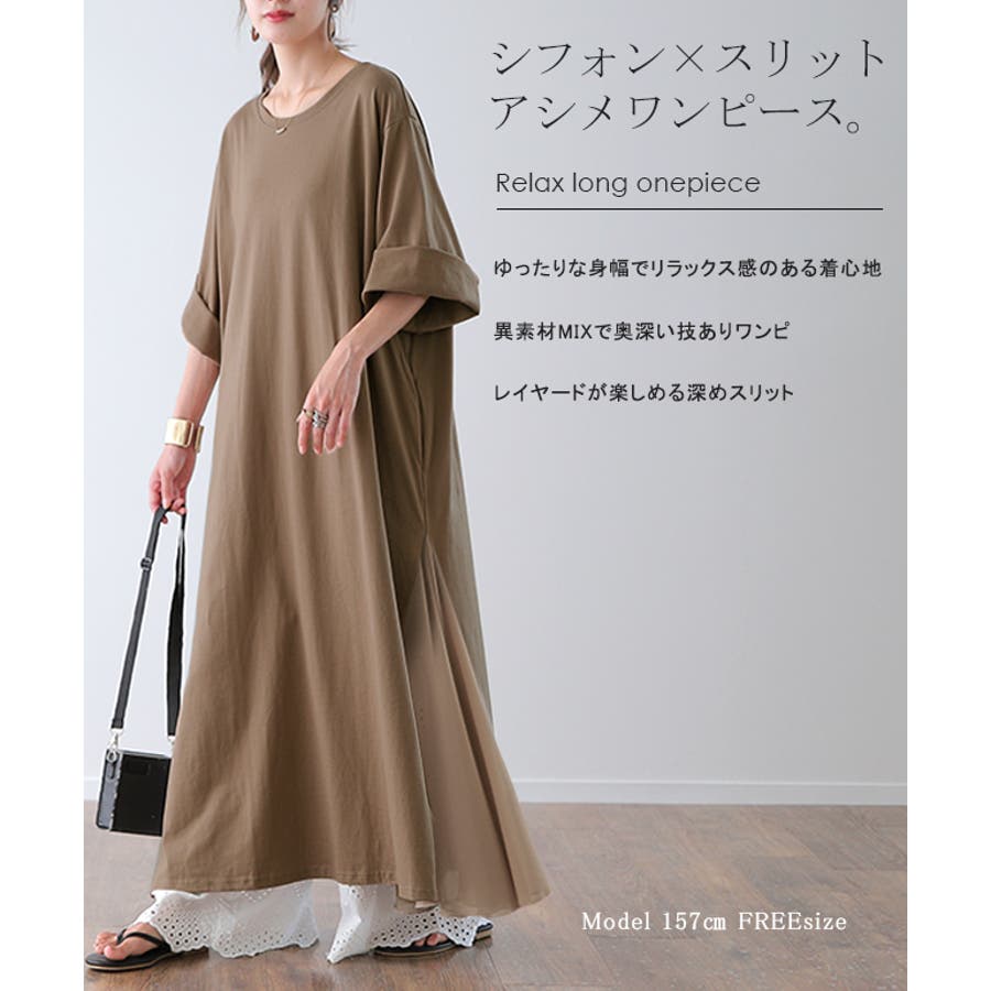 ワンピース マキシ丈ワンピース マキシワンピース スリットワンピース アシンメ