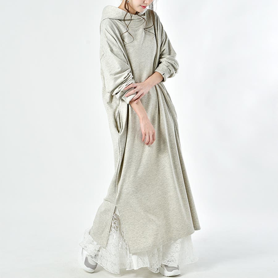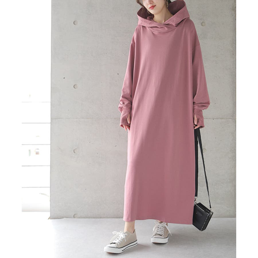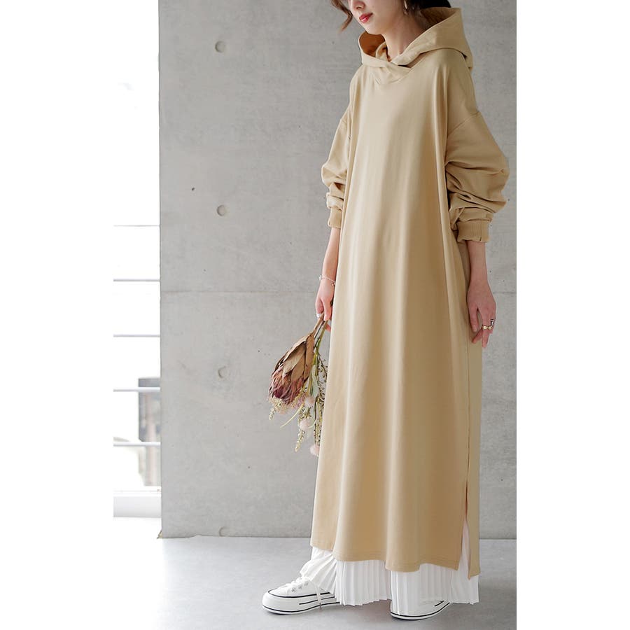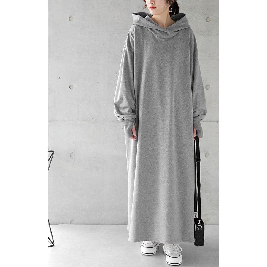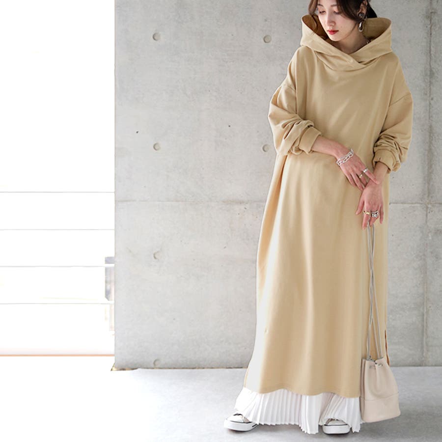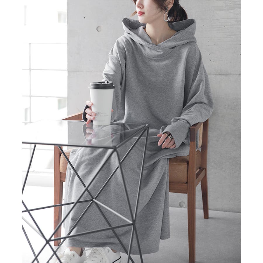 ゆるっとしたシルエットが魅力のパーカーワンピース。