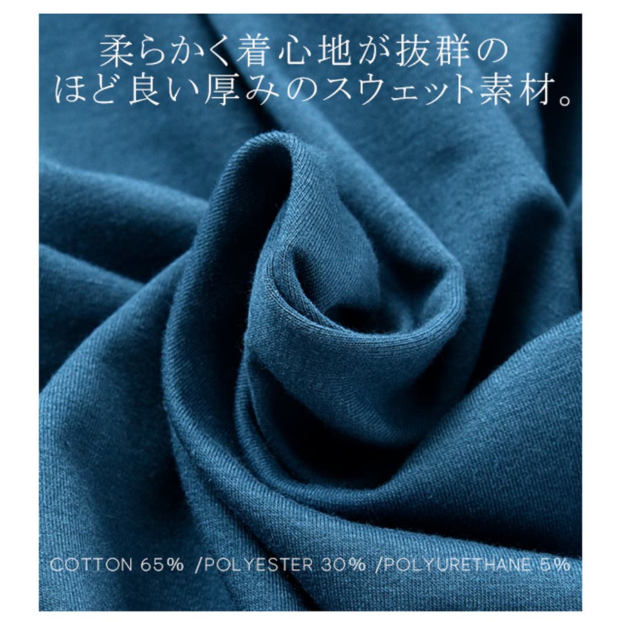 程よい落ち感と厚みのあるストレッチの効いたスウェット素材で着心地も◎