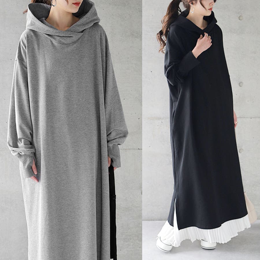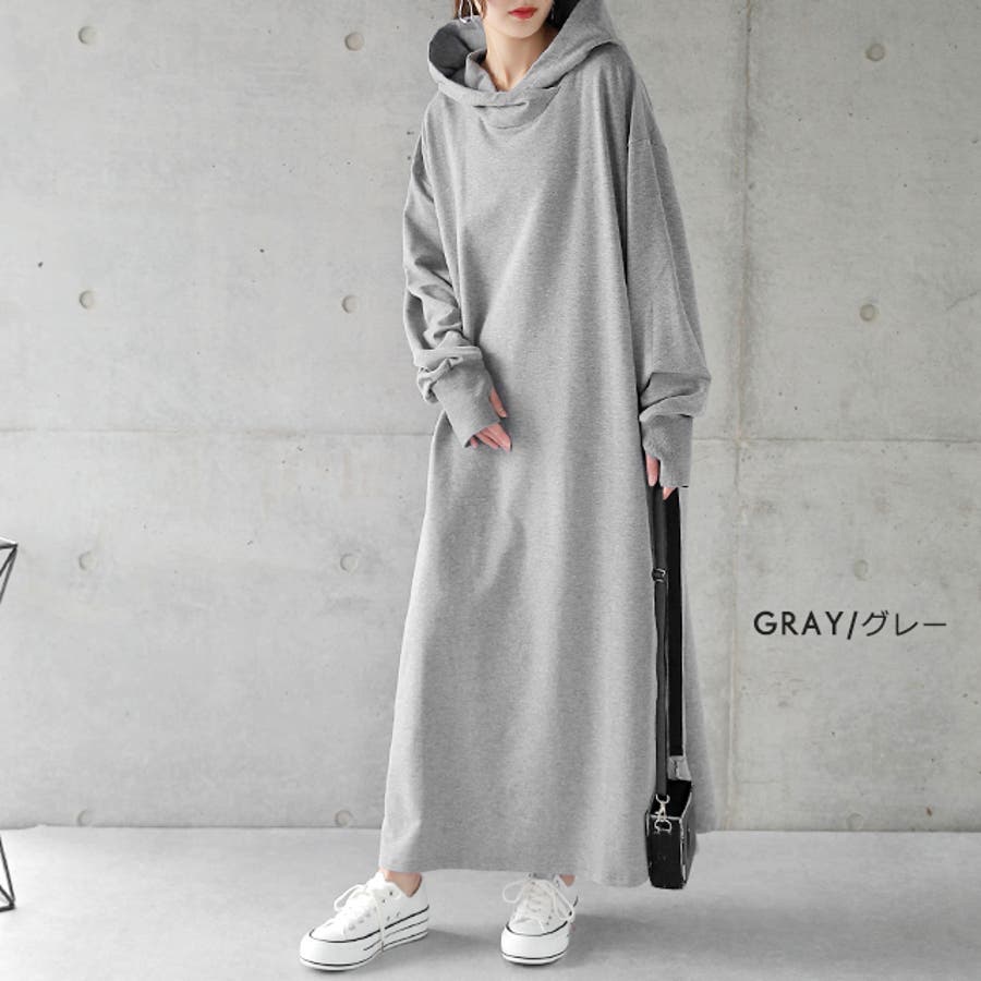 ワンピース レディース ロングワンピース 長袖 パーカーワンピース ロング
