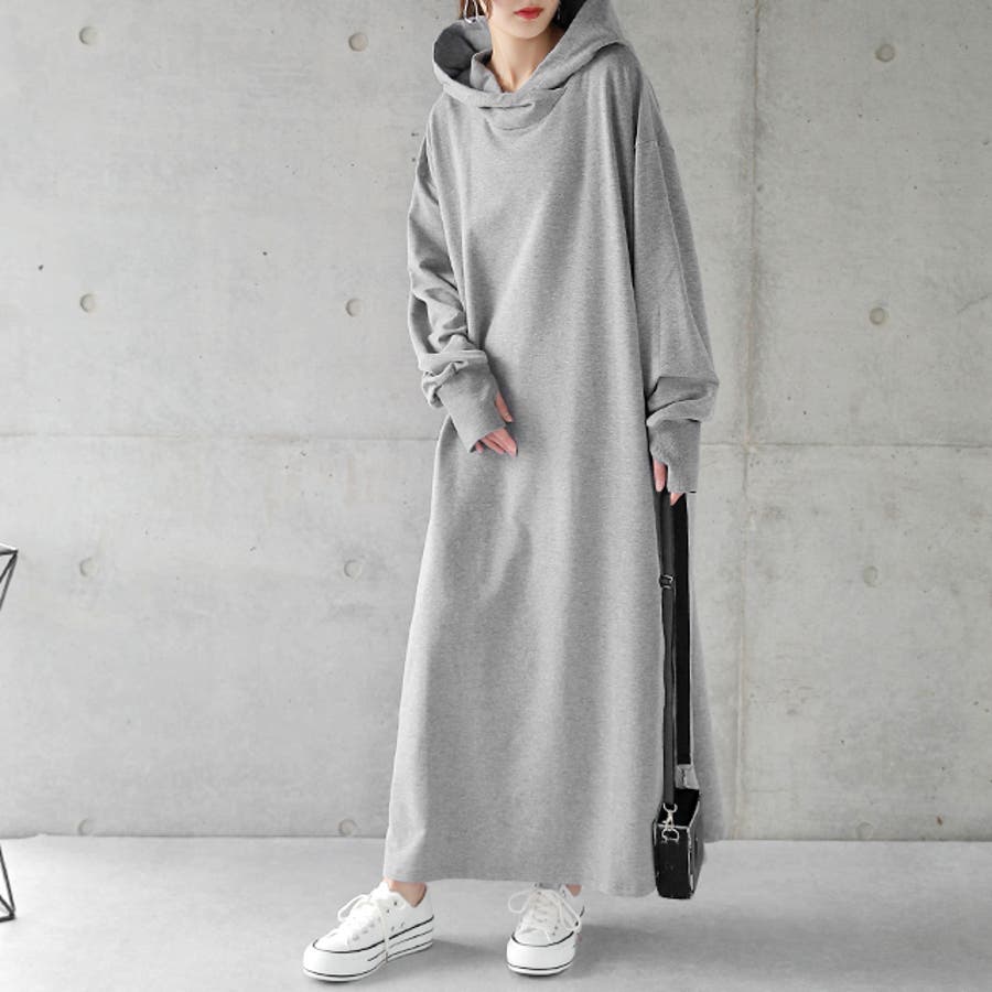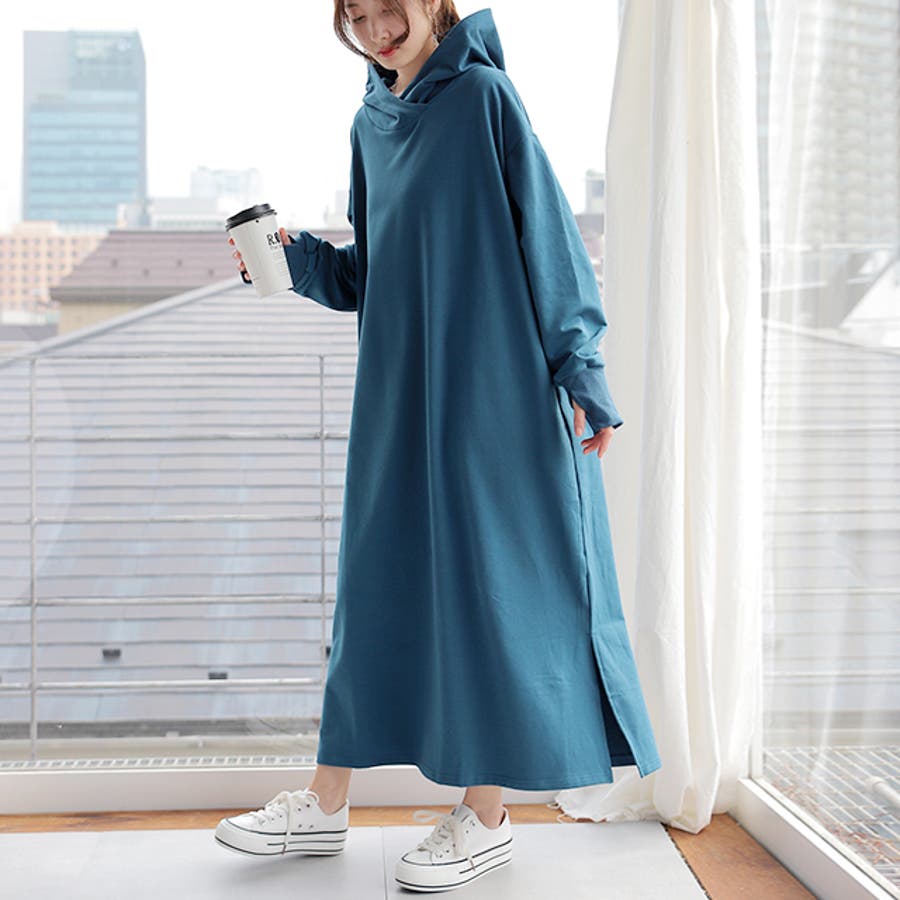 長袖 春夏 春 夏 無地 マキシ丈ワンピース マキシ丈 長い フード付き フーディー フード ドルマンスリーブ ドルマンブラック ブルー グレー 黒 黒色 青 青色 灰色 ラクチン 楽ちん スウェット 20代 30代 40代 50代 おしゃれ お洒落オシャレ カジュアル 体型カバー プルオーバー 部屋着 ルームウエア ルームウェア スリット 指穴 指穴パーカー ストレッチワンピース ロングワンピース パーカーワンピース M L 2L 3L XL XXL 2XL 20代 30代 40代 50代 おしゃれお洒落 オシャレ 可愛い かわいい カワイイ 大きいサイズ フリーサイズ マタニティ ハグユー はぐゆーHUG.U HUGU