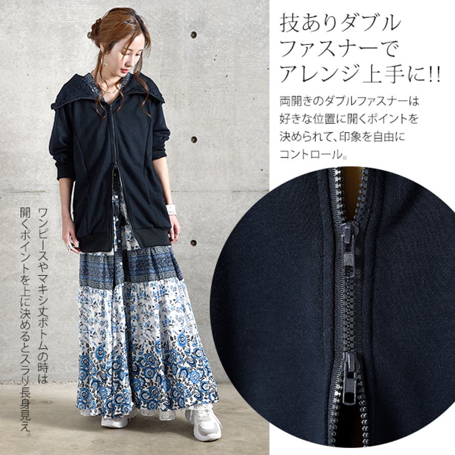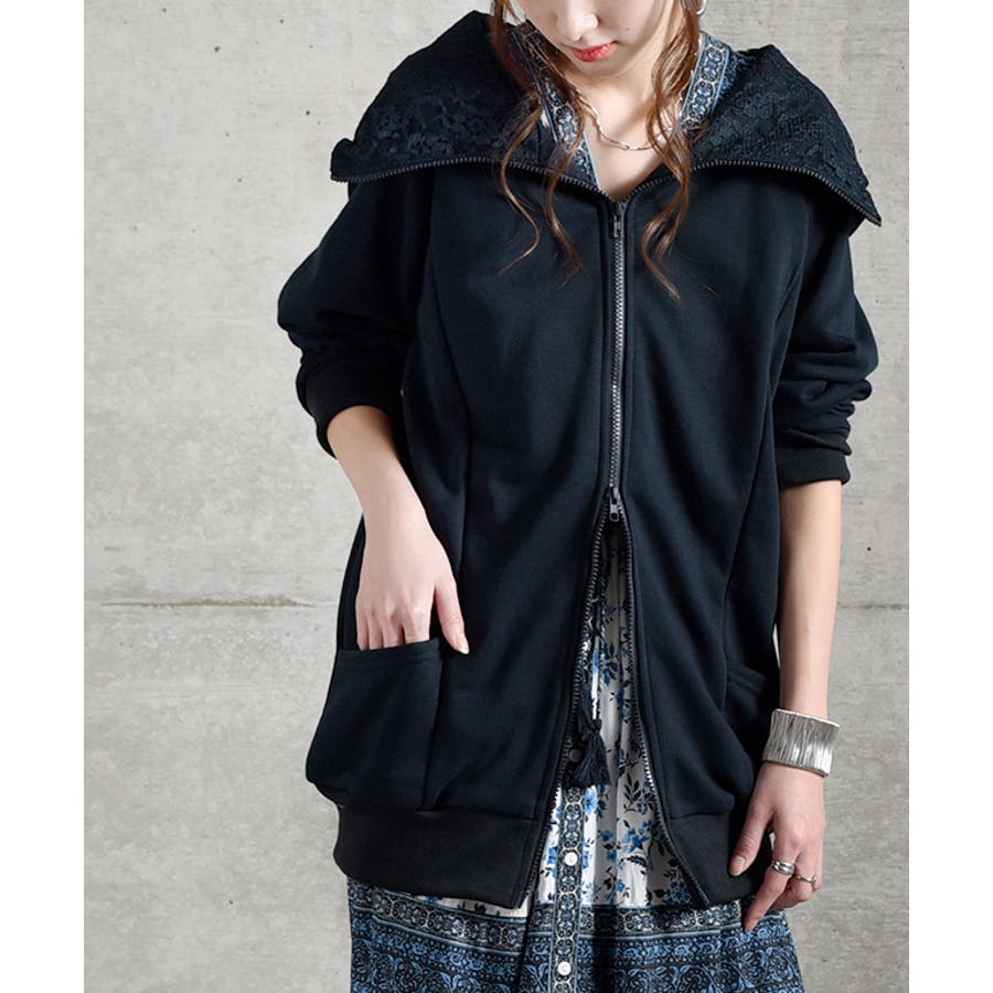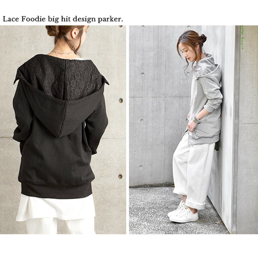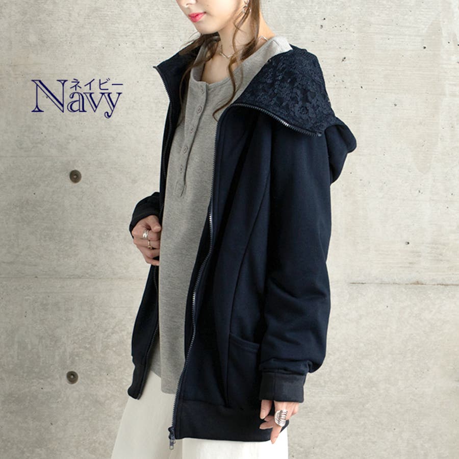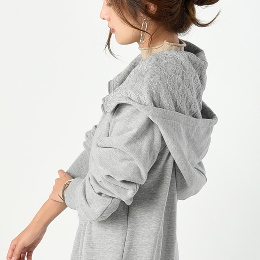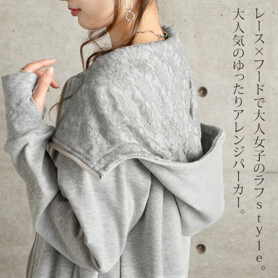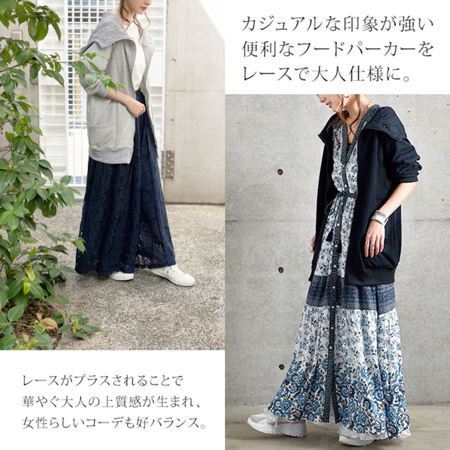 パーカー ロングパーカー レース スウェット スエット レースパーカー 花柄