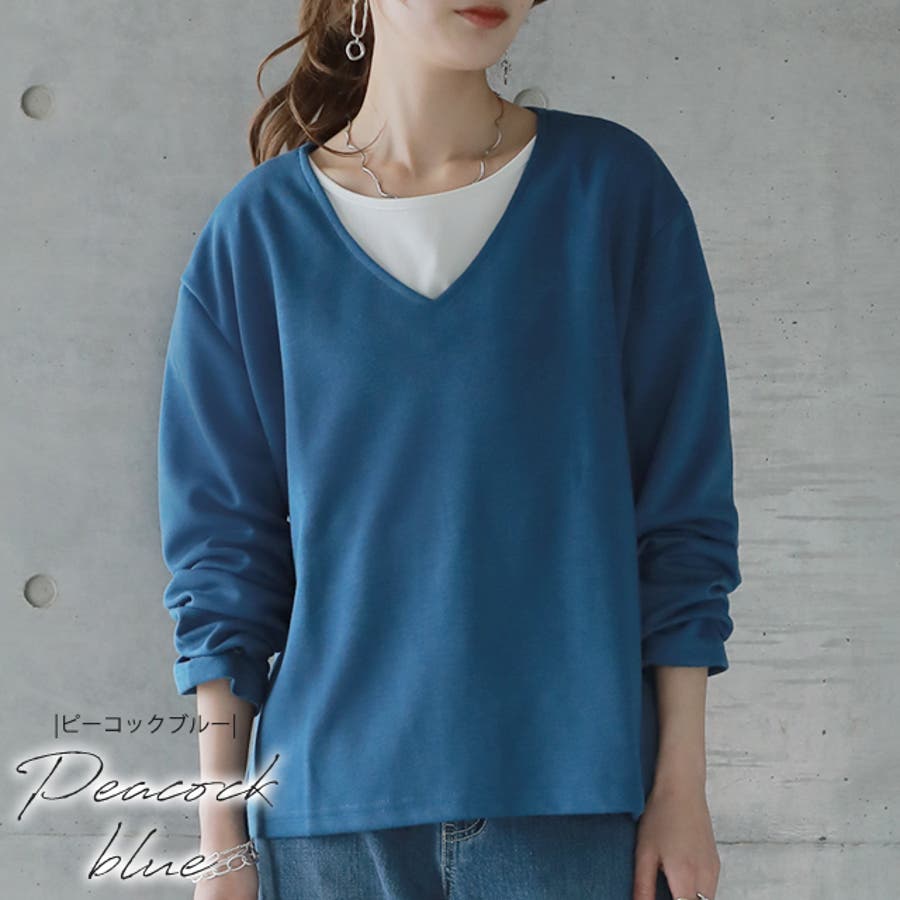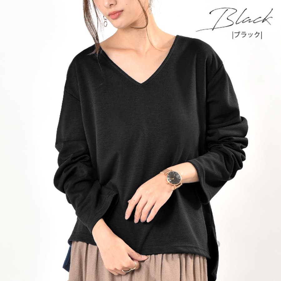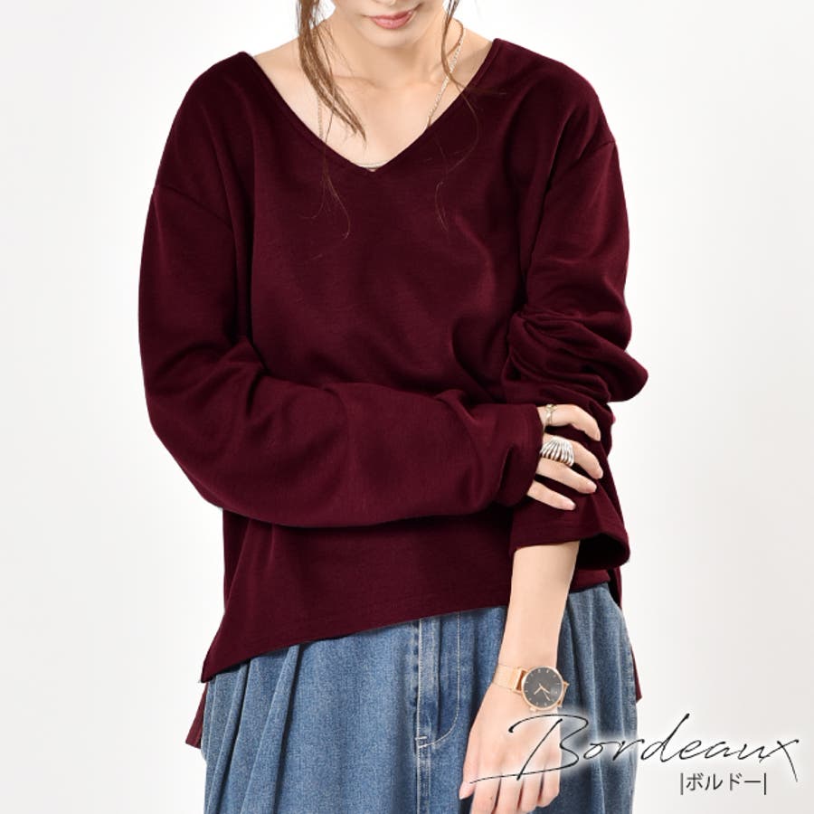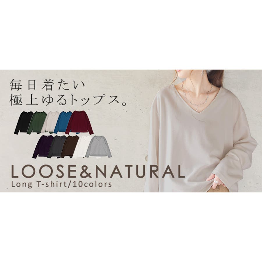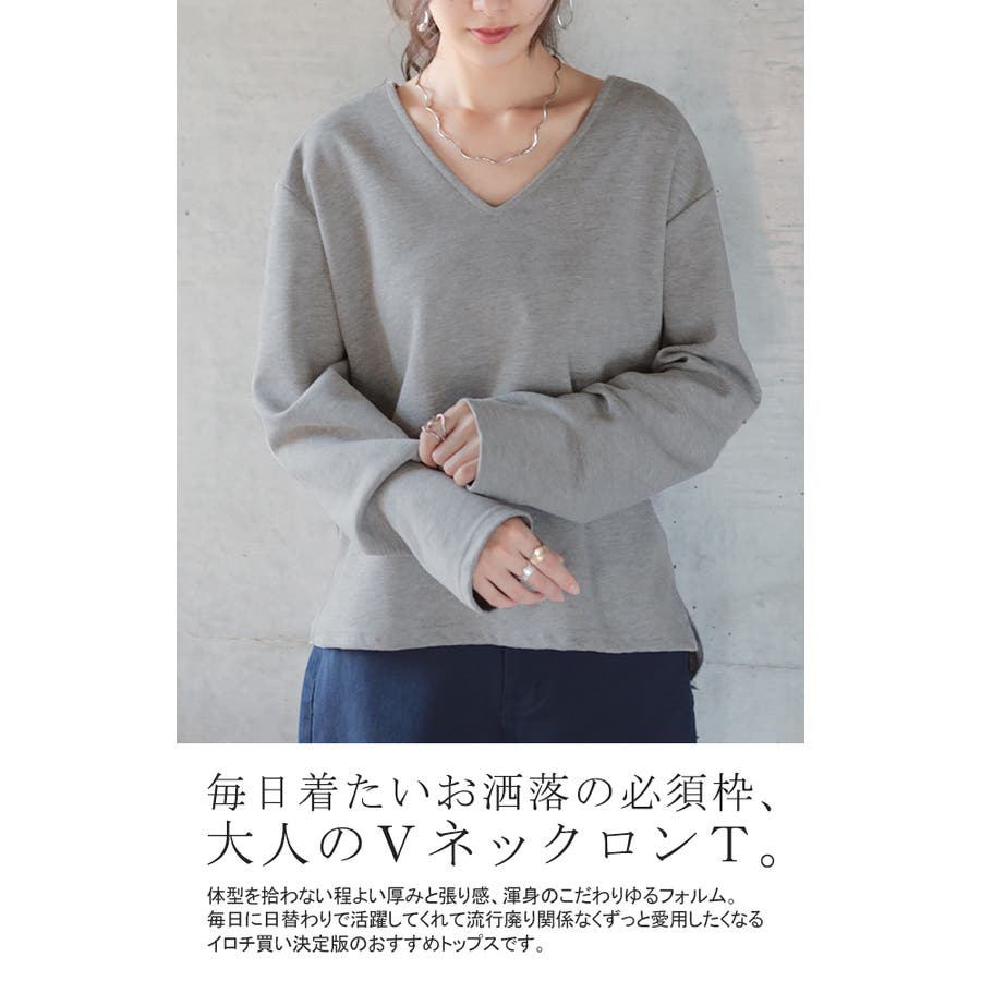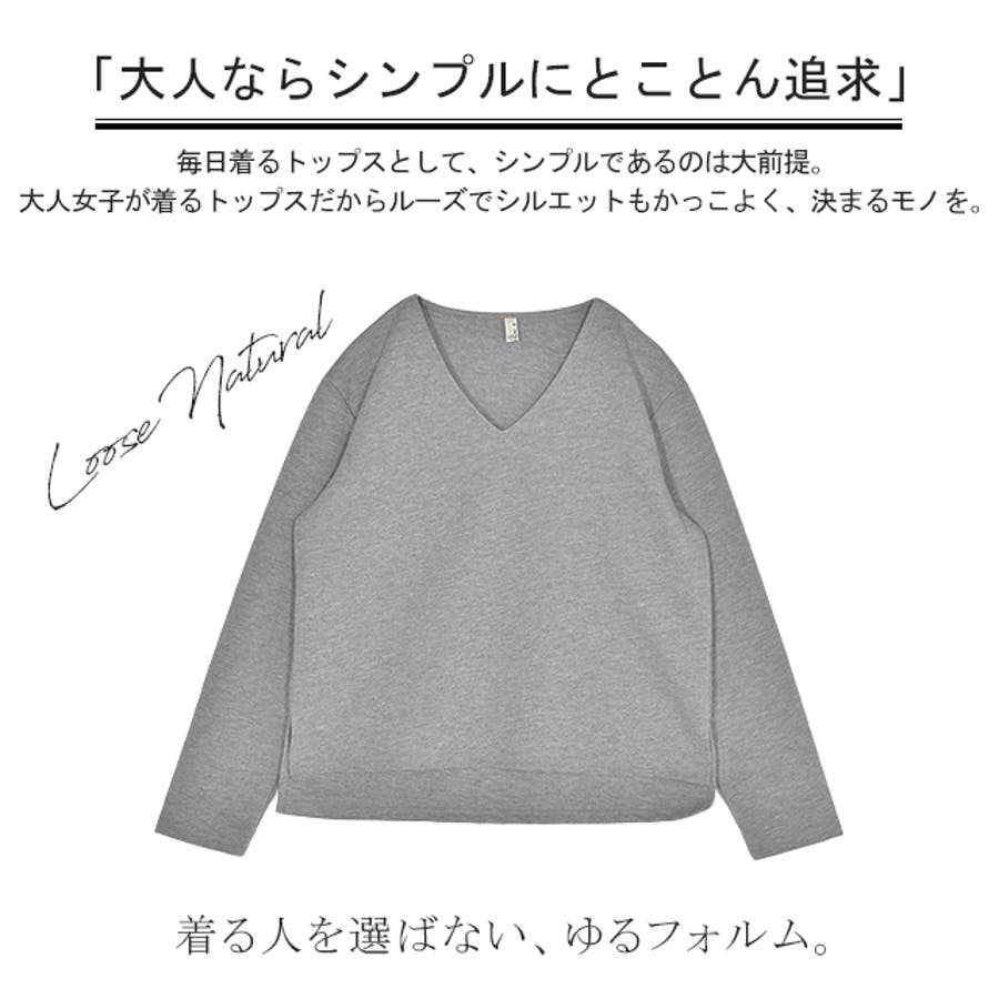ロンT レディース 長袖 トップス Vネック カットソー 無地ロングTシャツ