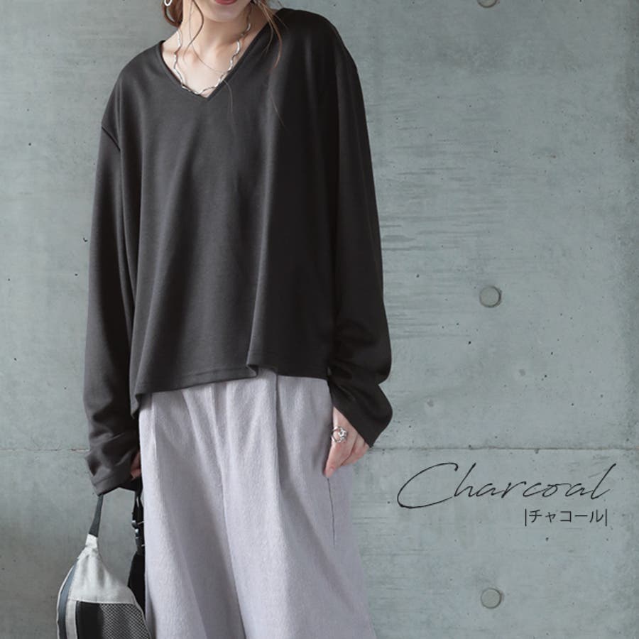 デコルテをちょうどいい具合に見せる拘りのVネックと、