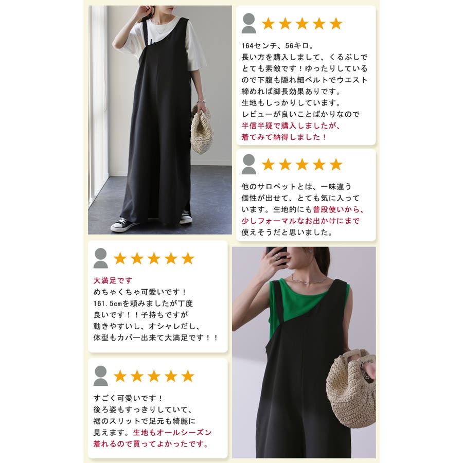 サロペット自体すごく可愛くて気に入ってます!さん (20代 / 女性 / 身長165~170cm )購入アイテム:カラー ブラックサイズ トール(股下63cm)いつものボトムスサイズ:Lサイズ感:少し大きい