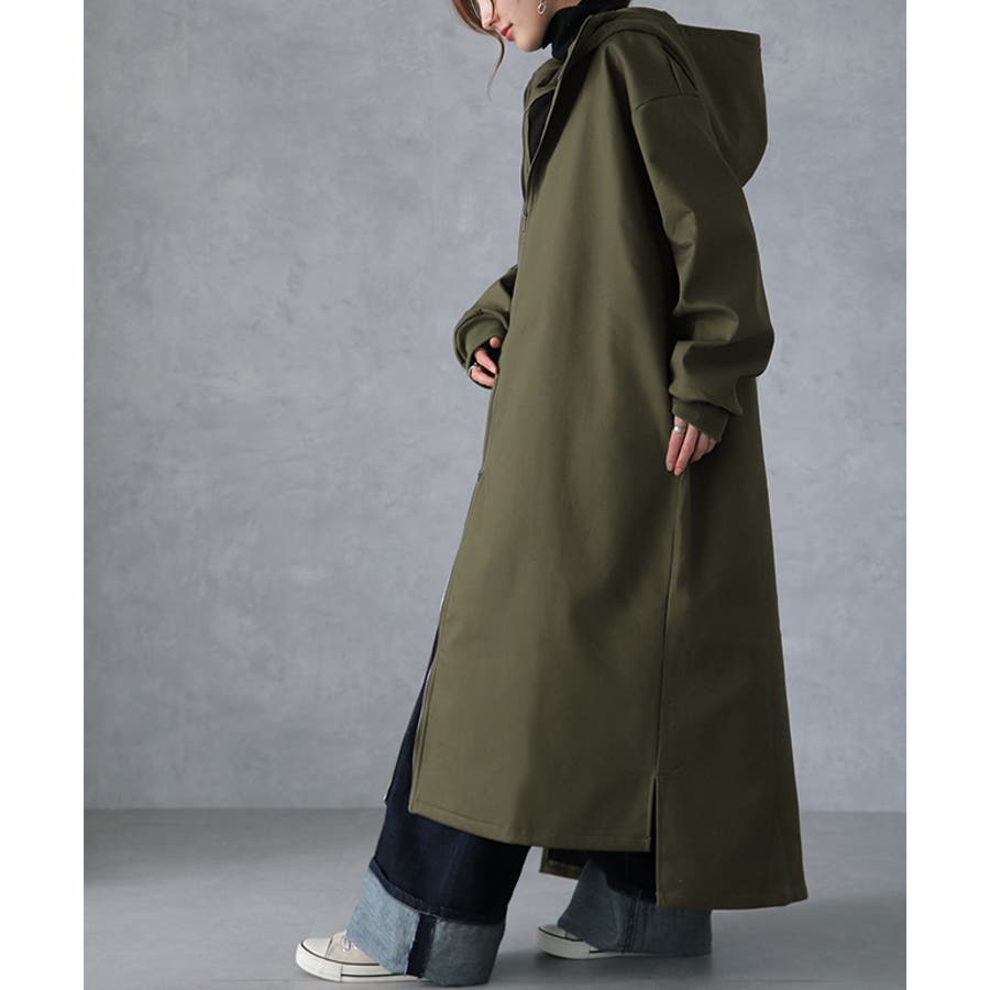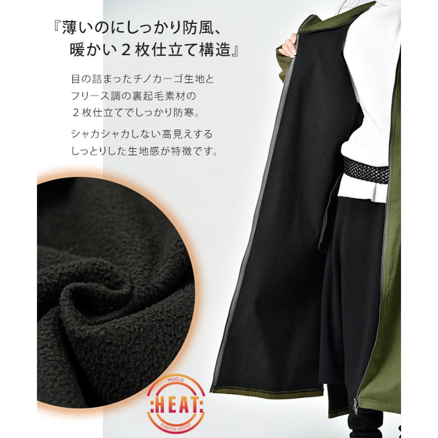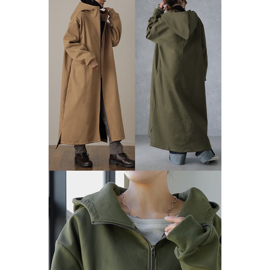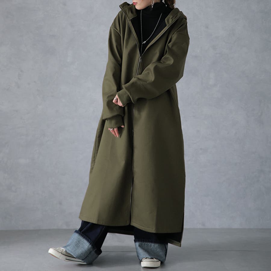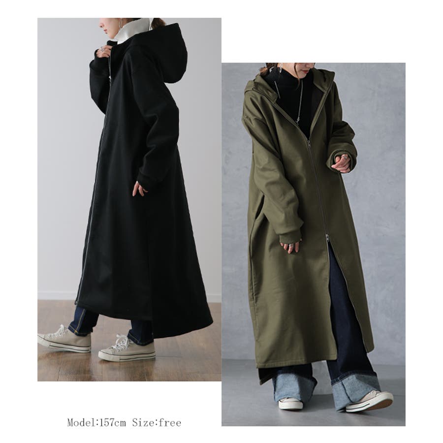 裏起毛アウター 裏起毛コート 裏起毛ロングコート フード付き フードコート フードアウター 暖か あったか 長い 長めドロップショルダー 体系カバー Aラインコート Aライン フリース ビックシルエット ビック ビッグ オーバーシルエット スリット長袖 防寒 ダブルジップ マキシ丈 黒 黒色 緑 緑色 ブラック カーキ 20代 30代 40代 50代 おしゃれ お洒落 オシャレかわいい 可愛い カワイイ フリーサイズ M L HUG.U HUGU ハグユー