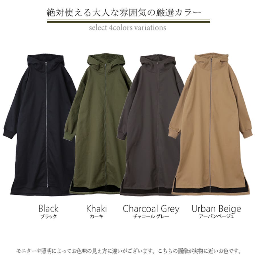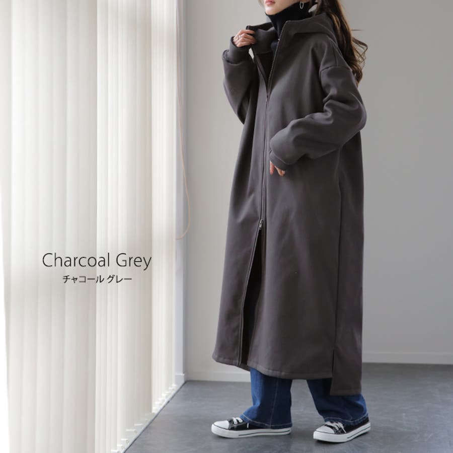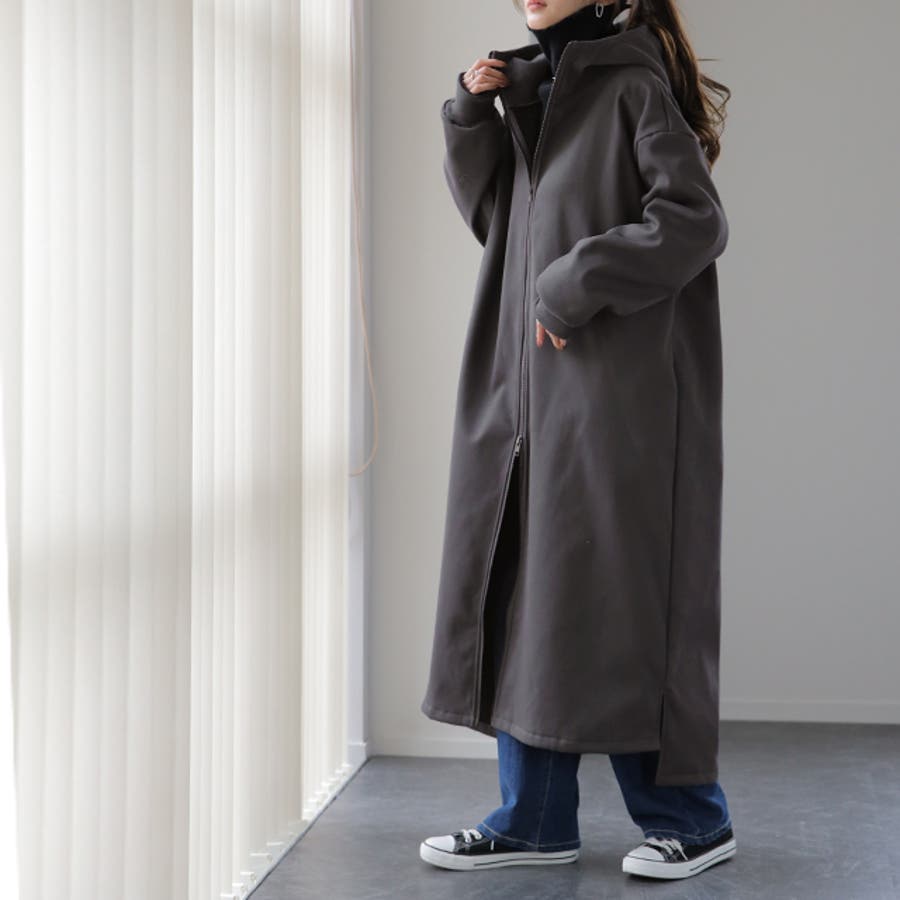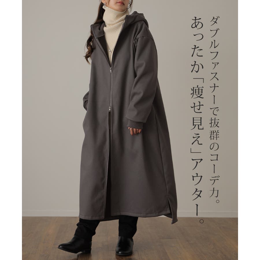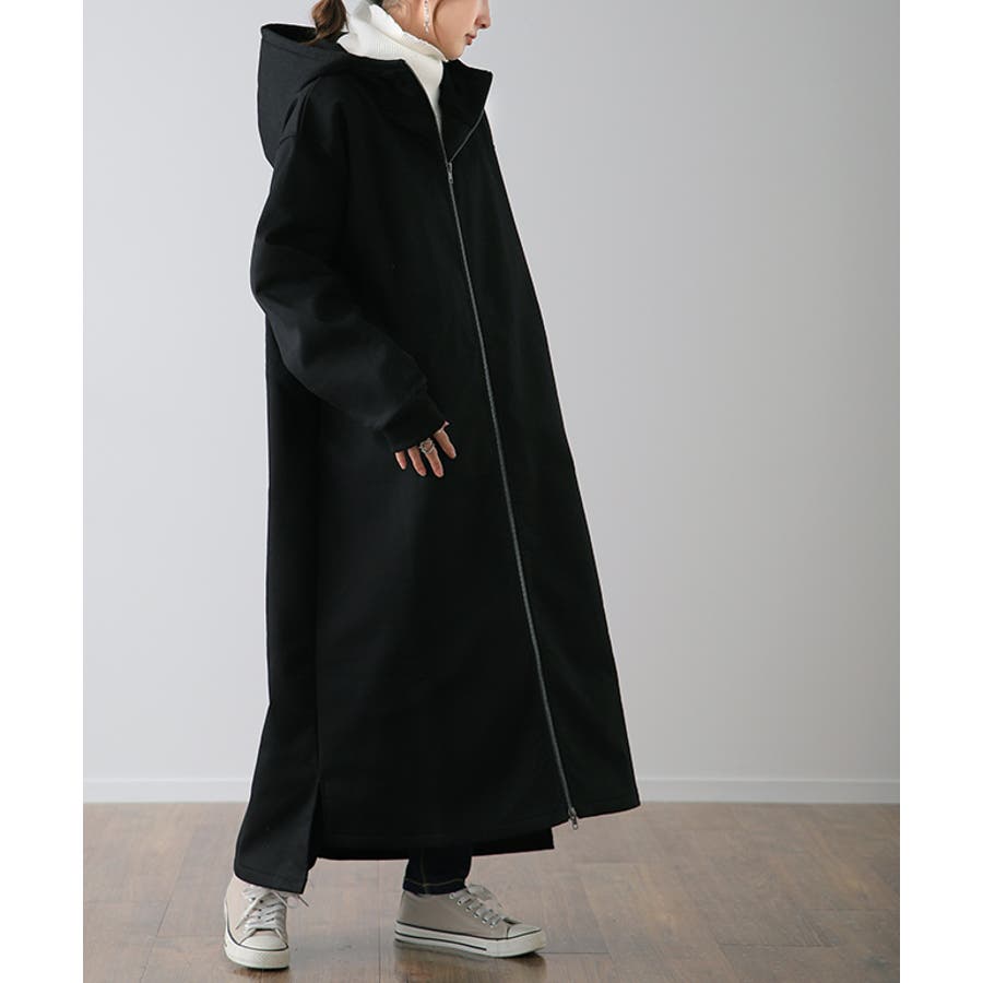 裏起毛アウター 裏起毛コート 裏起毛ロングコート フード付き フードコート フードアウター 暖か あったか 長い 長めドロップショルダー 体系カバー Aラインコート Aライン フリース ビックシルエット ビック ビッグ オーバーシルエット スリット長袖 防寒 ダブルジップ マキシ丈 黒 黒色 緑 緑色 ブラック カーキ 20代 30代 40代 50代 おしゃれ お洒落 オシャレかわいい 可愛い カワイイ フリーサイズ M L HUG.U HUGU ハグユー