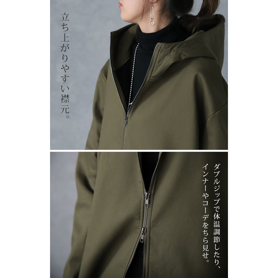 ダブルジップで着方のアレンジが効くので、気分に合わせてスタイリングが可能。