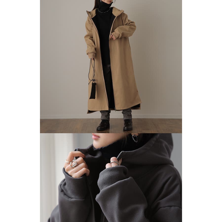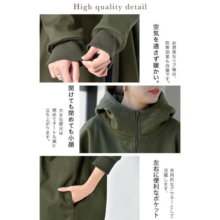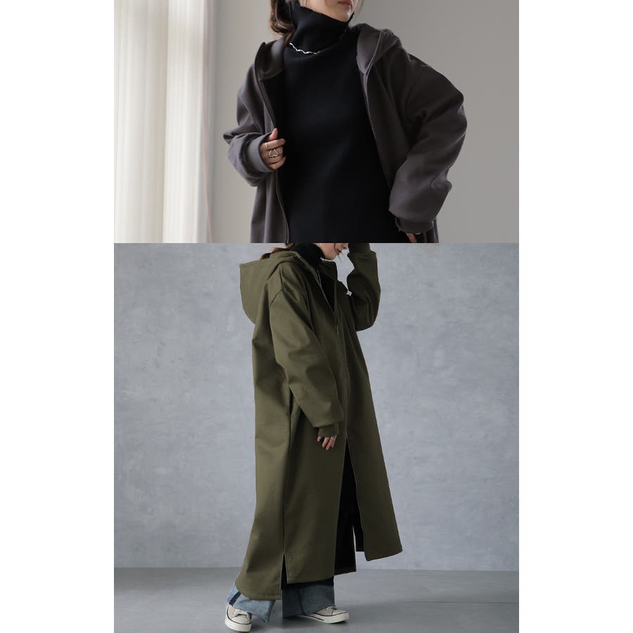 超ロング丈やハイネックが長身見せや小顔効果も発揮します。