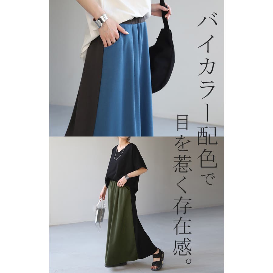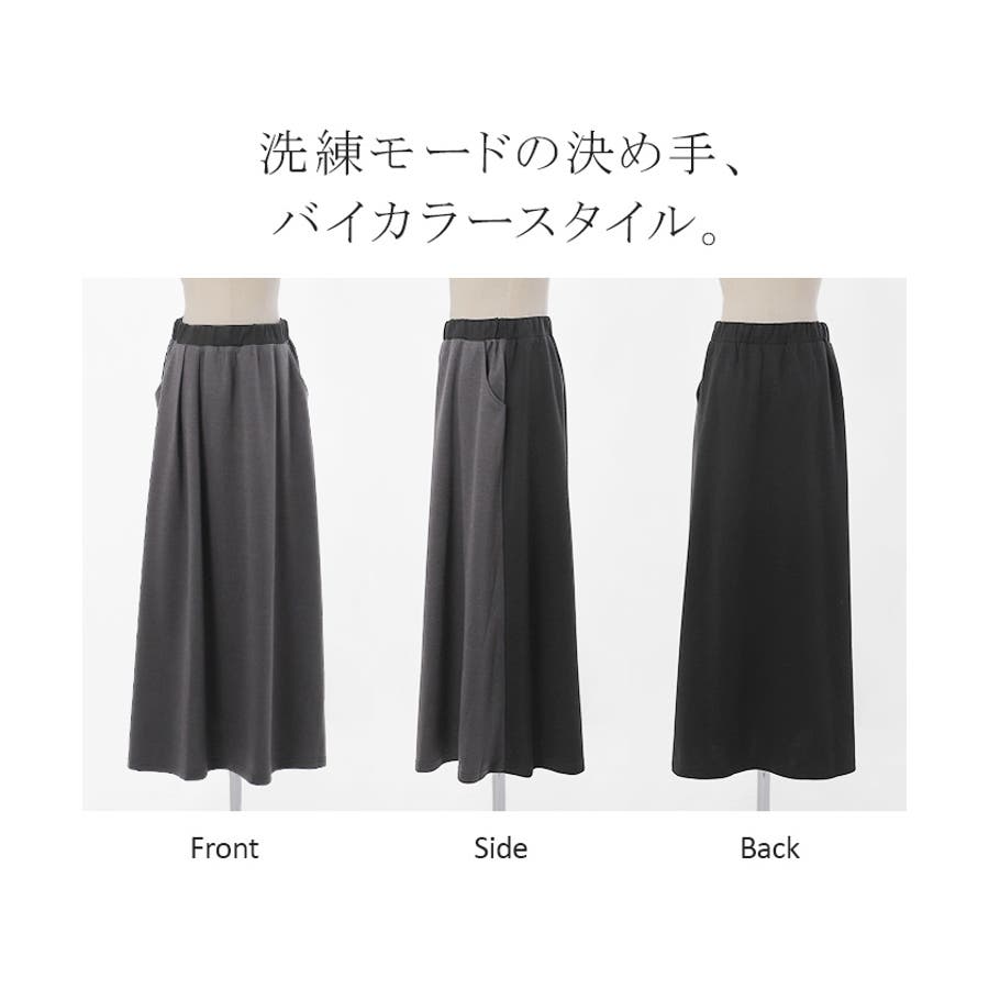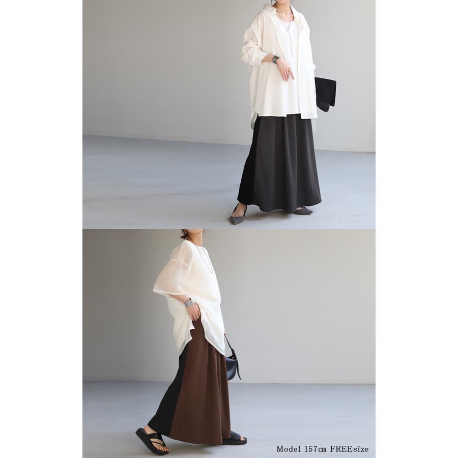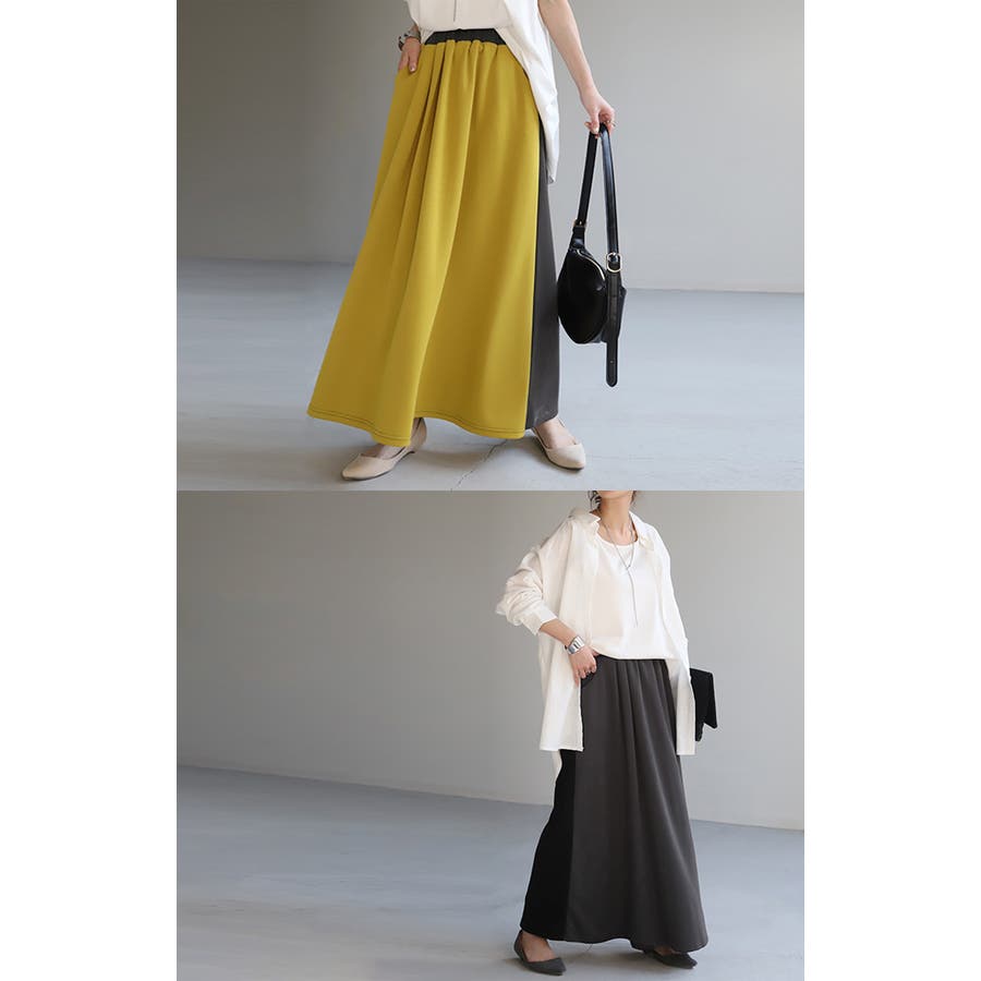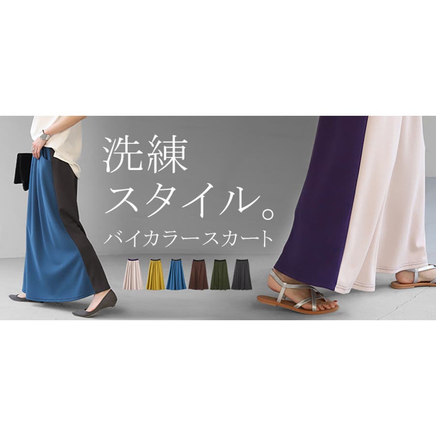 前後バイカラーで自然な縦長コーデをまとめるロングスカート。