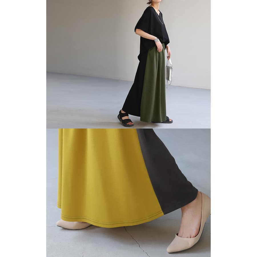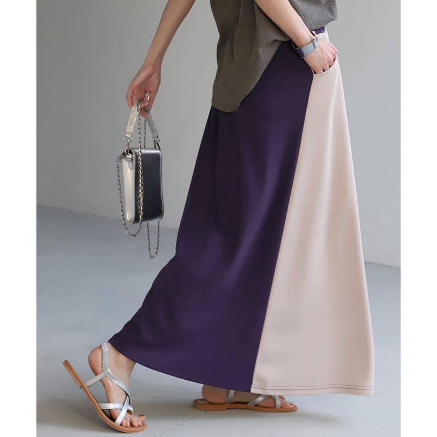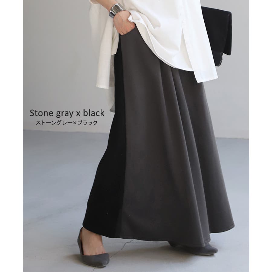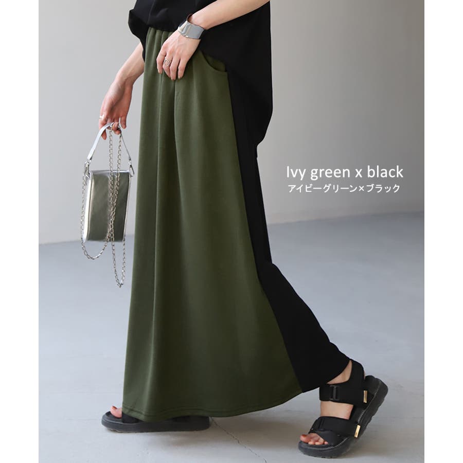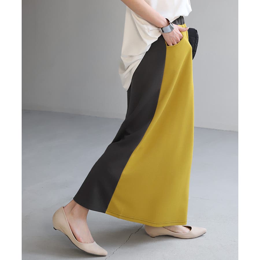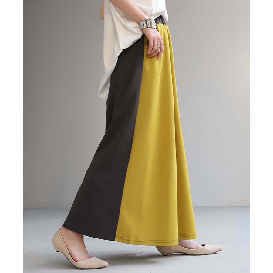 前後バイカラーで自然な縦長コーデをまとめるロングスカート。