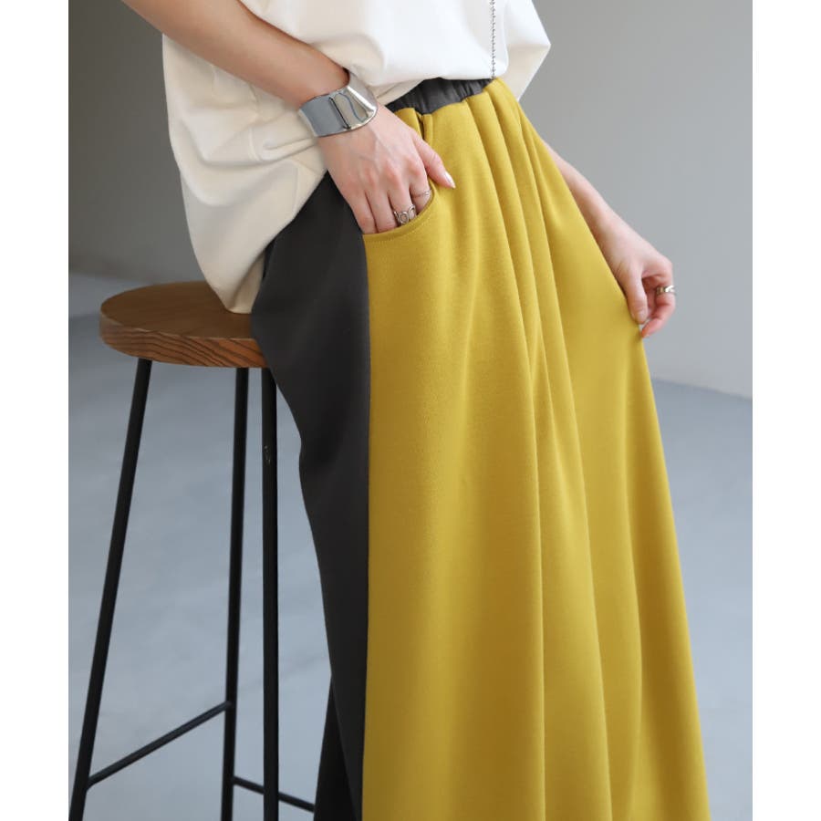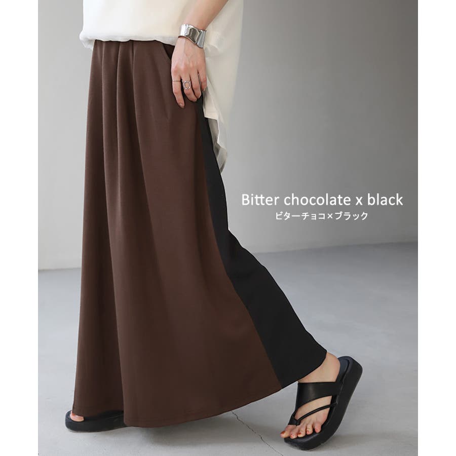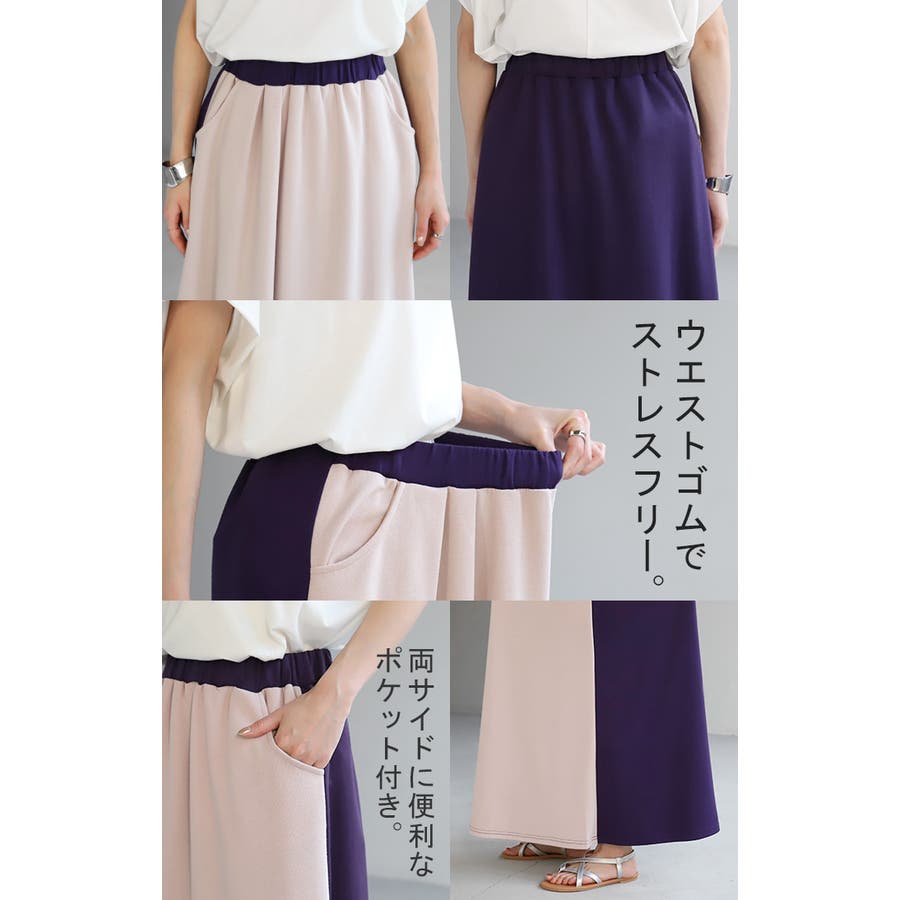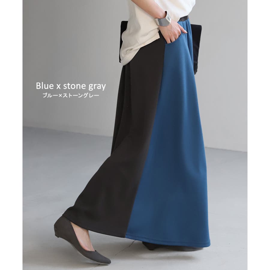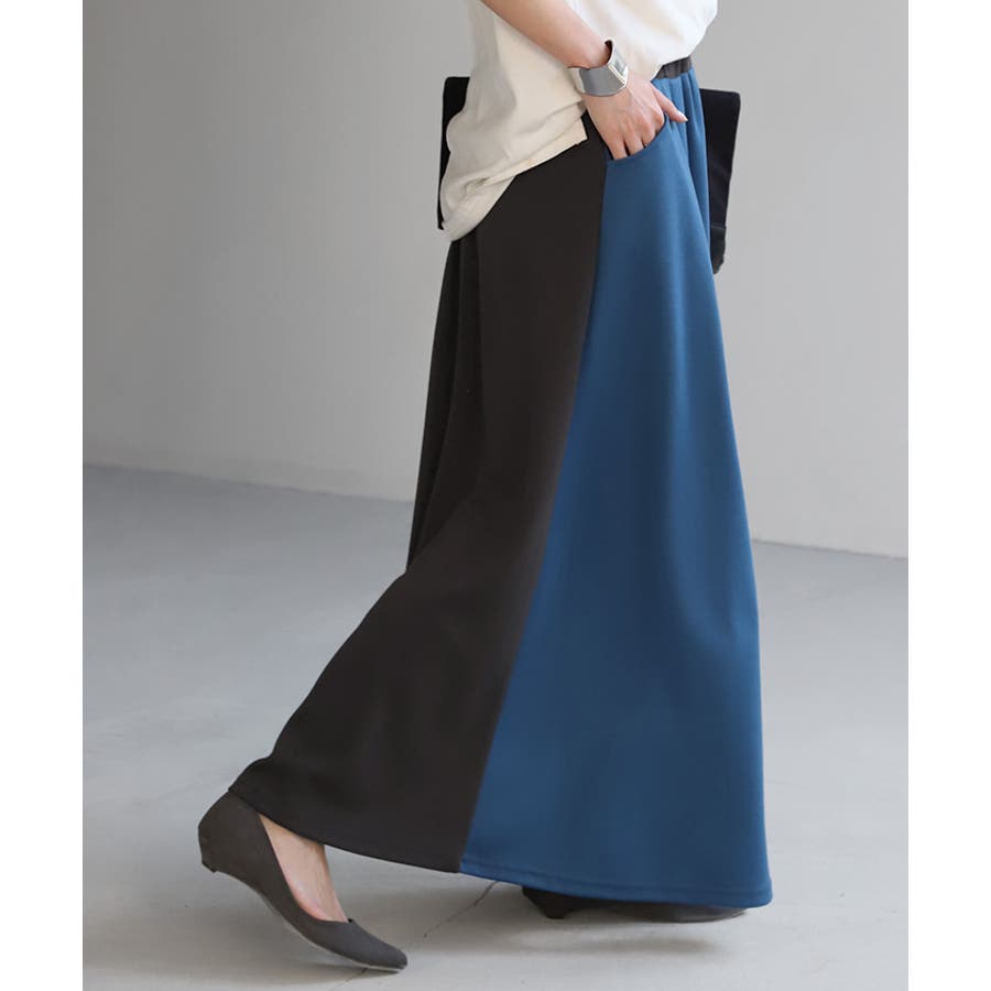 前後バイカラーで自然な縦長コーデをまとめるロングスカート。