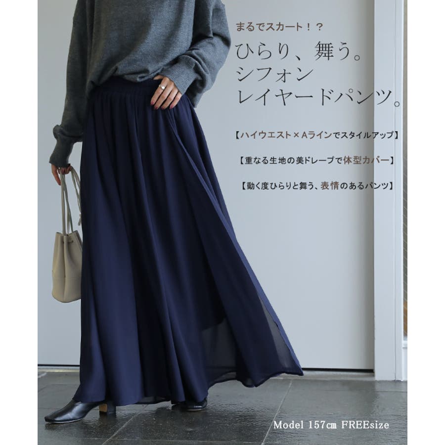ドレープ感が美しい重ねシフォンのワイドパンツ。