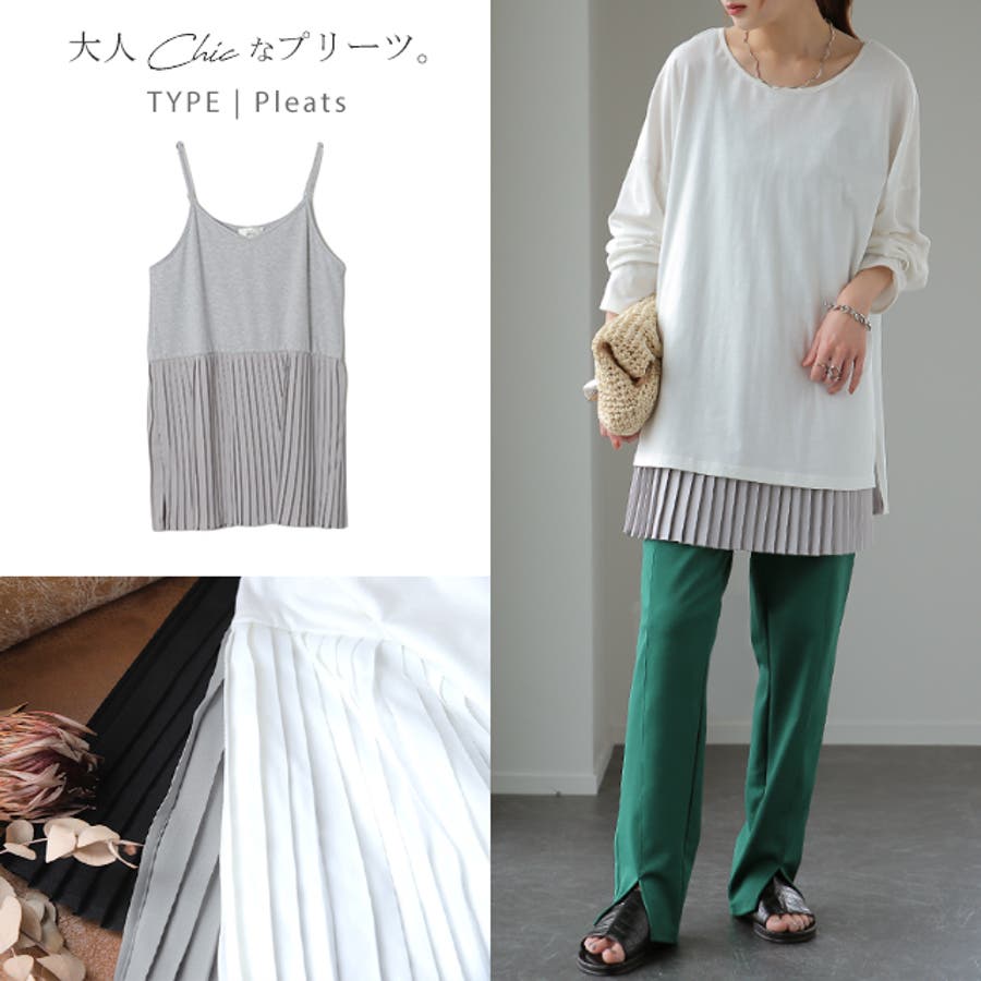 白色のプリーツキャミはすでに持っていて、すごく活用していたのでこの度黒も欲しくなり購入しました!やっぱり黒も可愛いです◎アイロンいらずだしレイヤード風に着るととても可愛くて、この商品とても気に入っています!