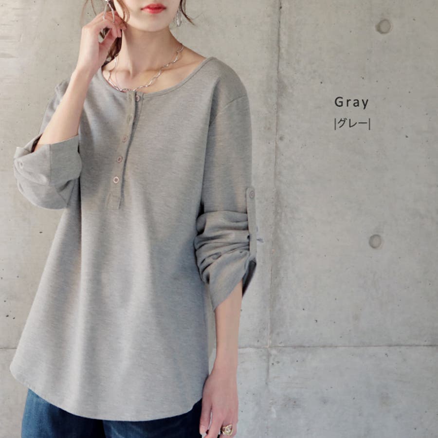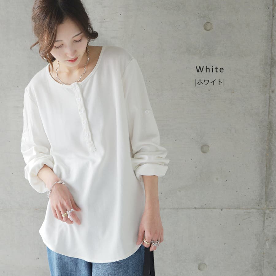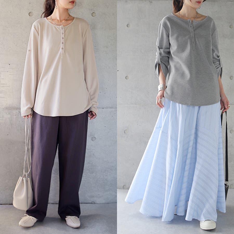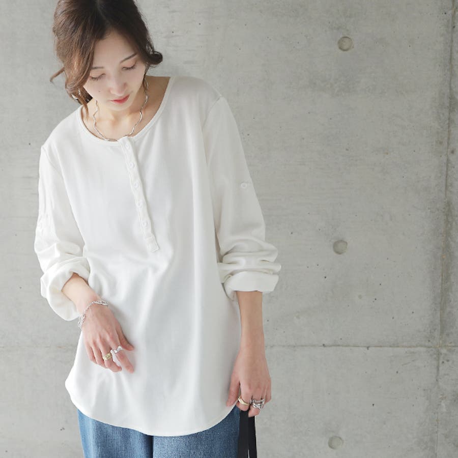 ロンT レディース トップス 長袖 ヘンリーネック ロングTシャツ カットソー