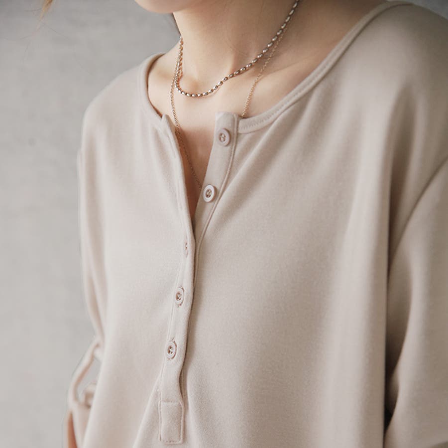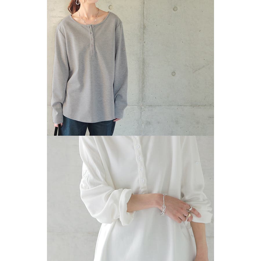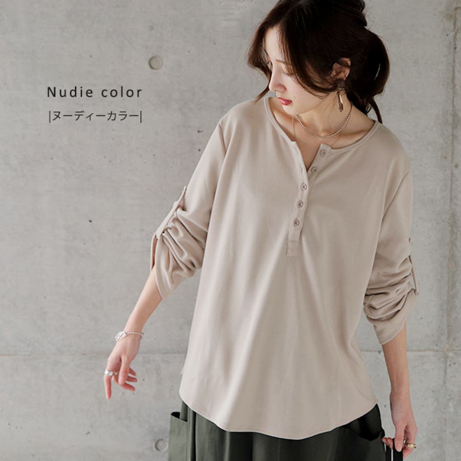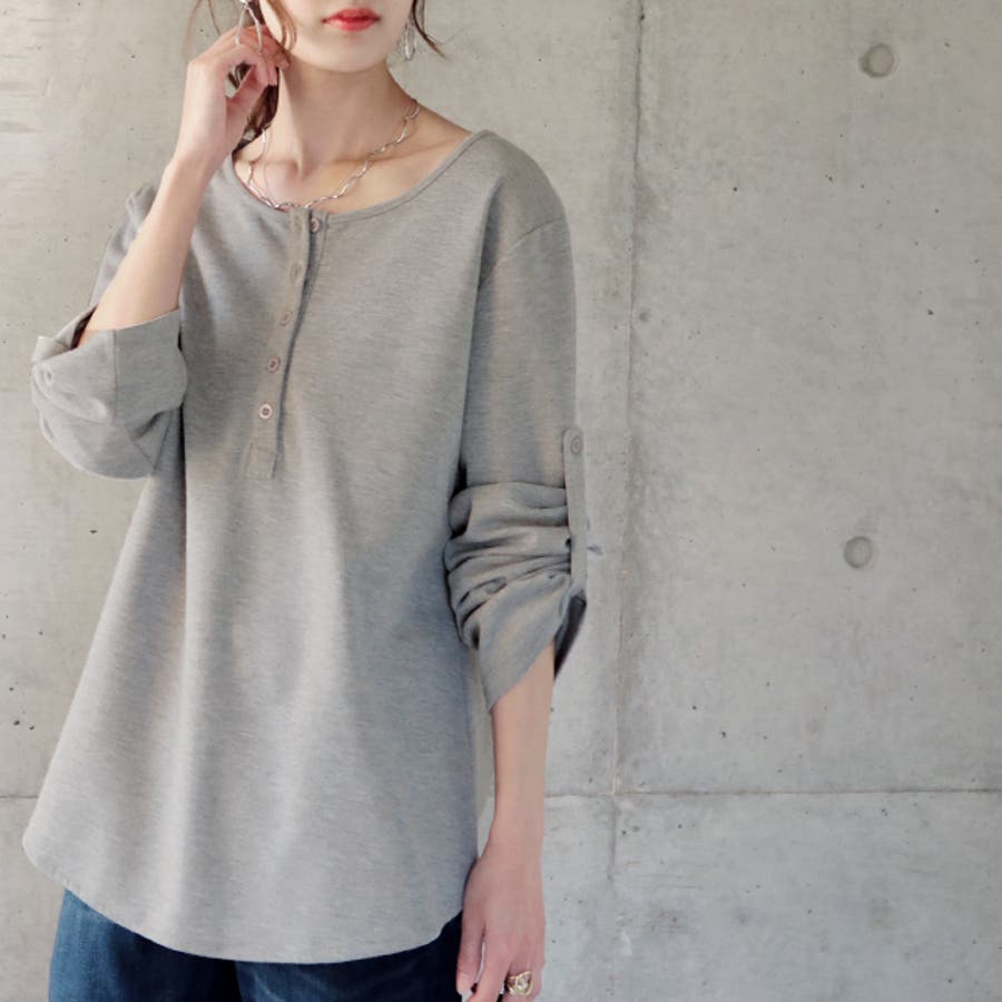 ロンT レディース トップス 長袖 ヘンリーネック ロングTシャツ カットソー