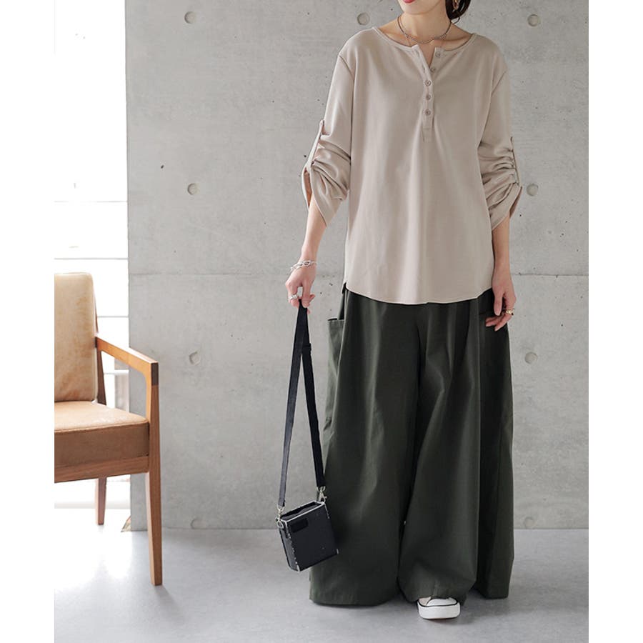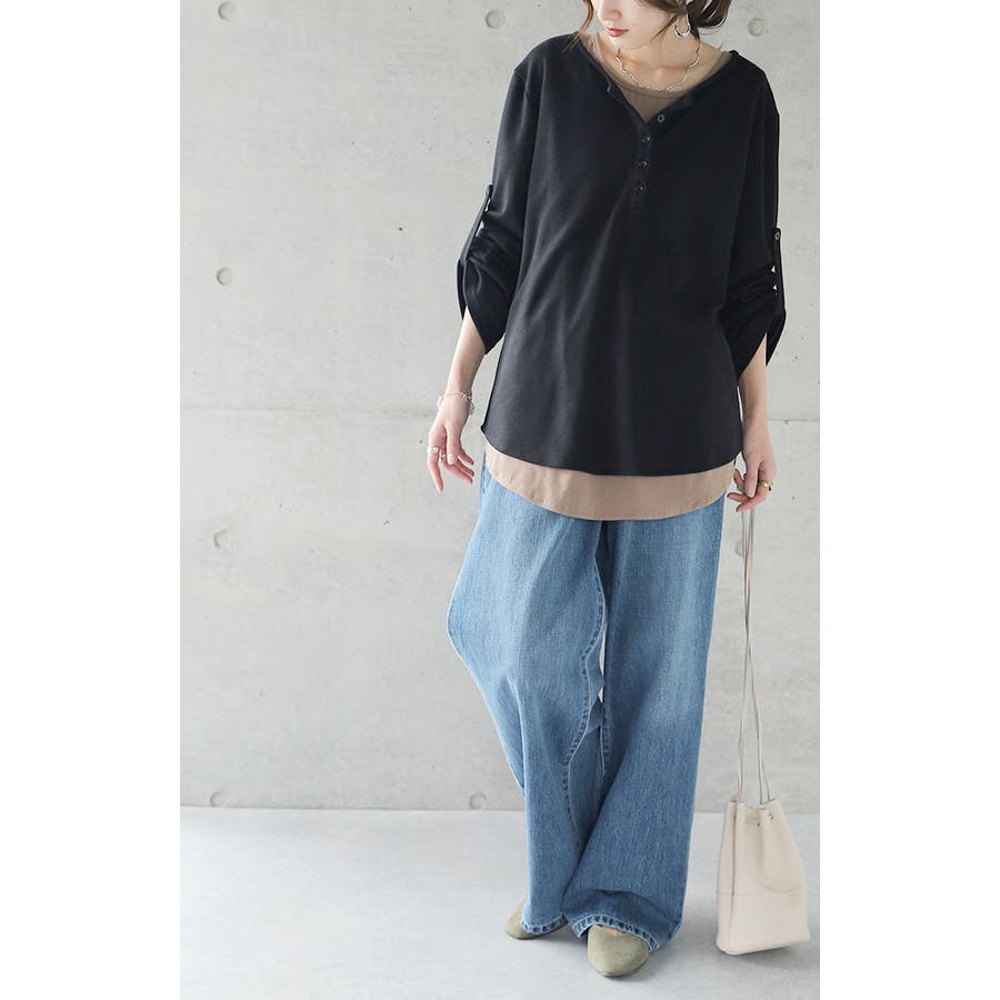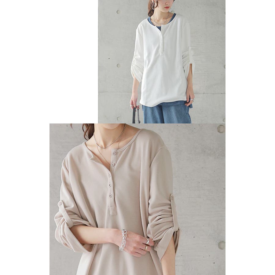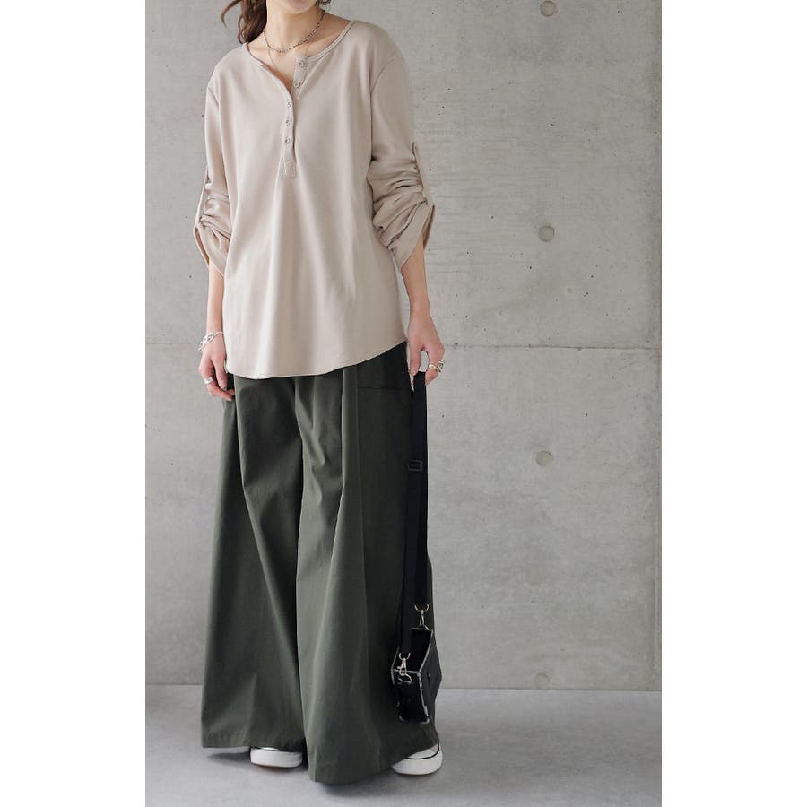 着こなしが楽しめるヘンリーネックTシャツです。