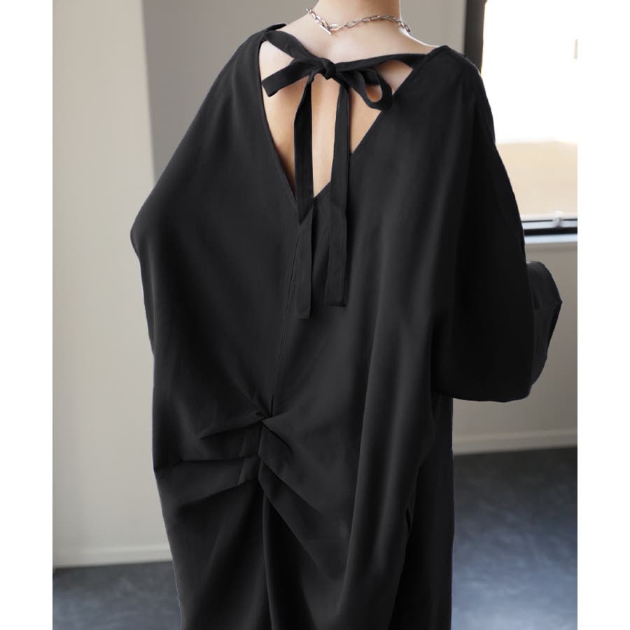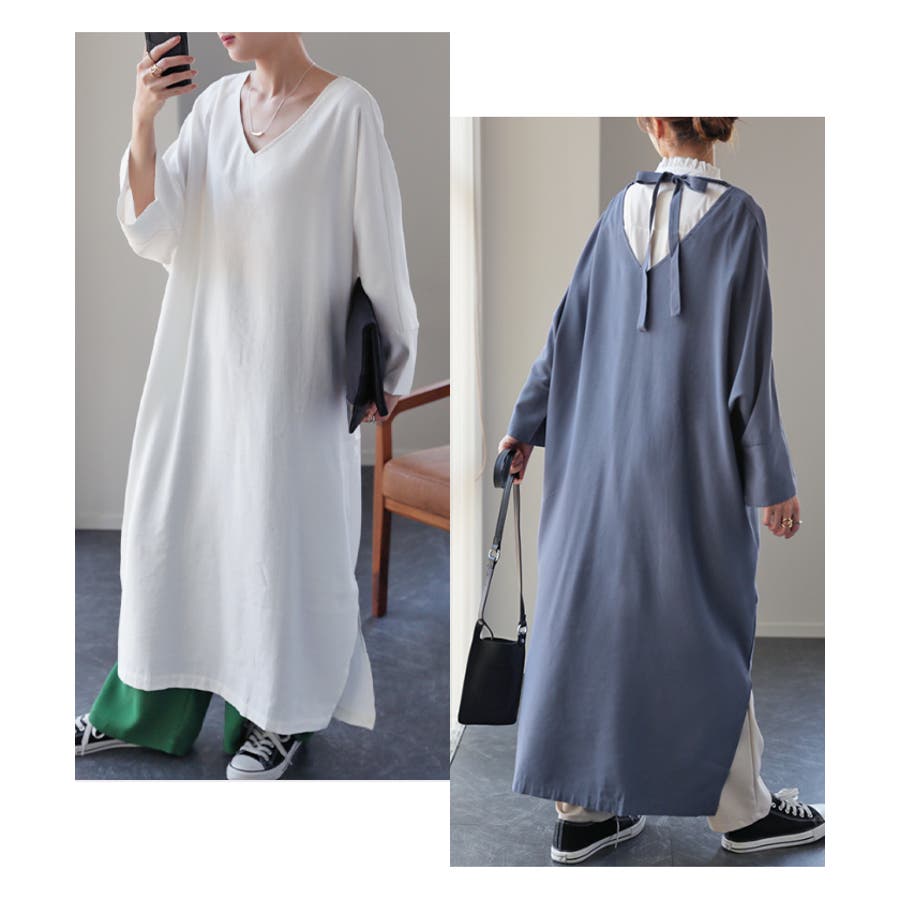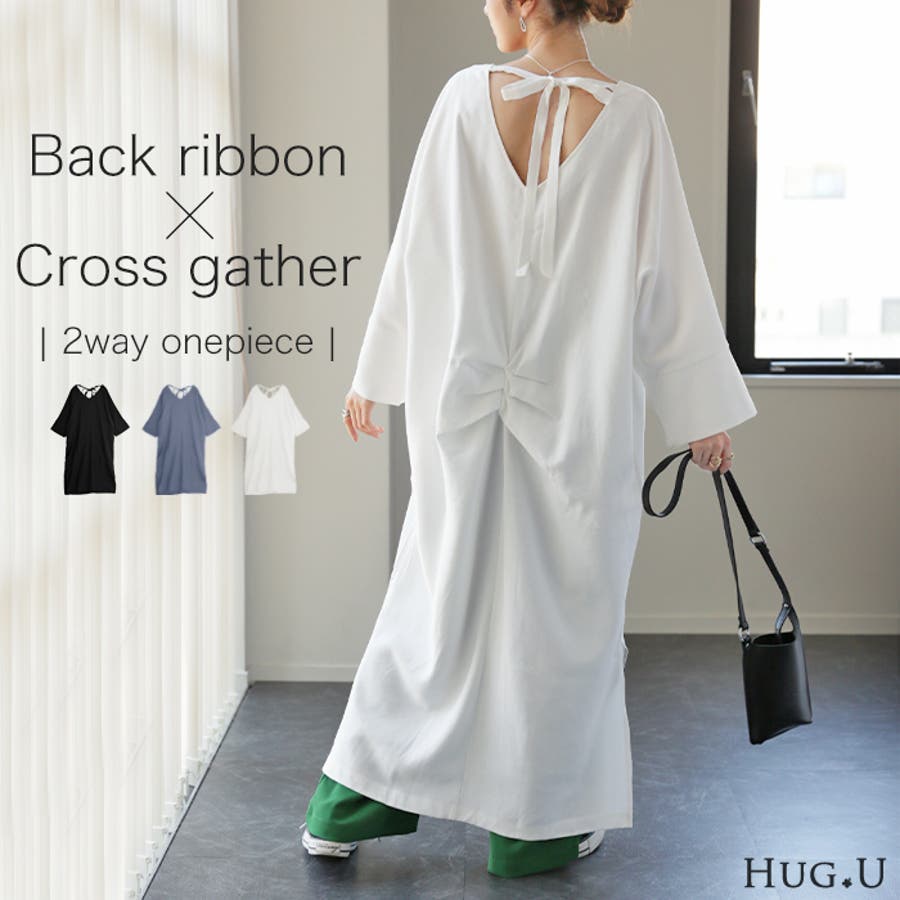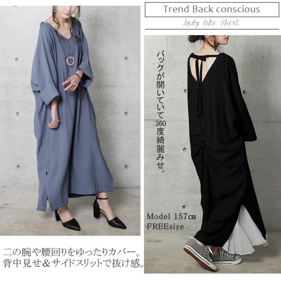 マキシワンピ マキシ丈ワンピース マキシ丈ワンピ スリットワンピ ドルマンワンピース フレアワンピース フレア フレアワンピマタニティワンピース マタニティワンピ リボン 細リボン Vネック 背中魅せ 背中見せ 肌見せ バックコンシャス バックシャンギャザー リボン りぼん きれいめ キレイめ 無地 シンプル ビックシルエット ビッグシルエット ビッグ ビック 二の腕カバーレイヤードワンピース レイヤードワンピ 20代 30代 40代 50代 おしゃれ お洒落 オシャレ かわいい 可愛い カワイイ 青青色 ブルー 黒 黒色 ブラック フリーサイズ M L XL XXL 2L 3L HUG.U HUGU ハグユー はぐゆー