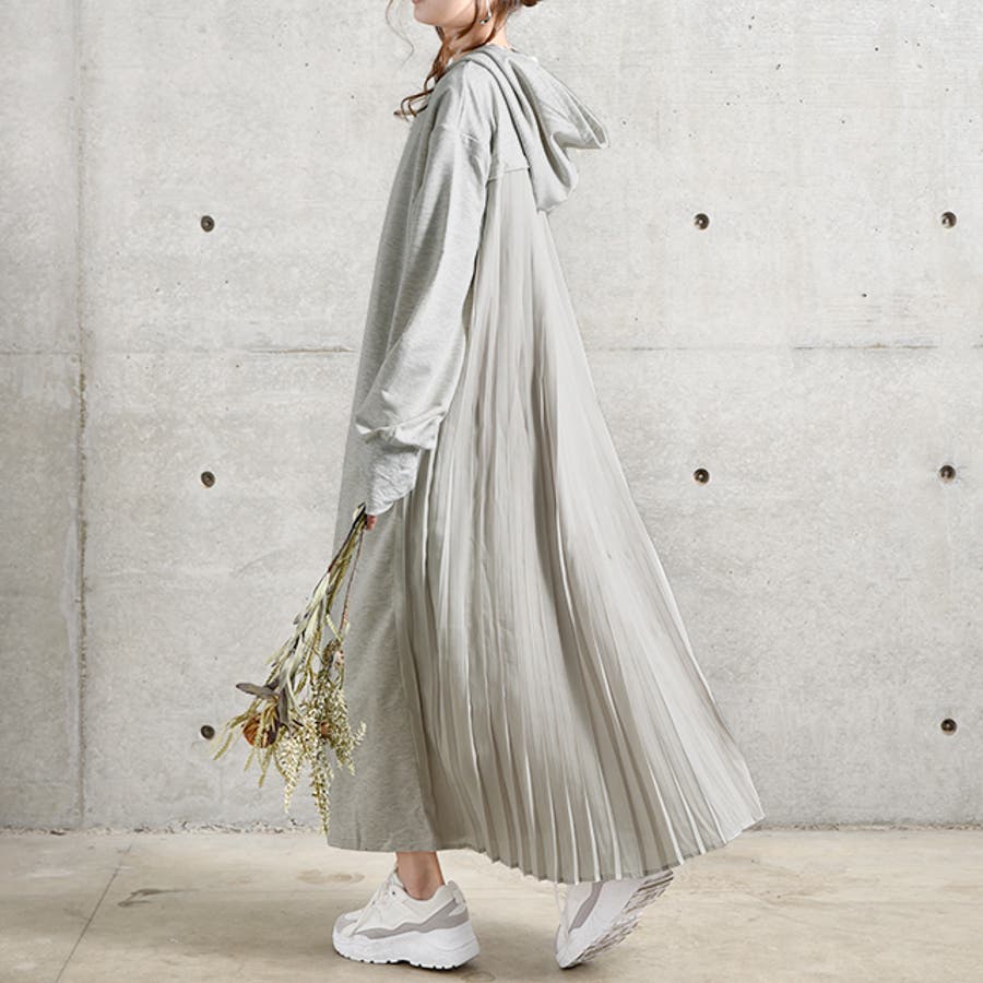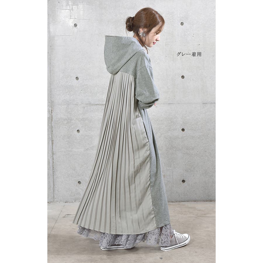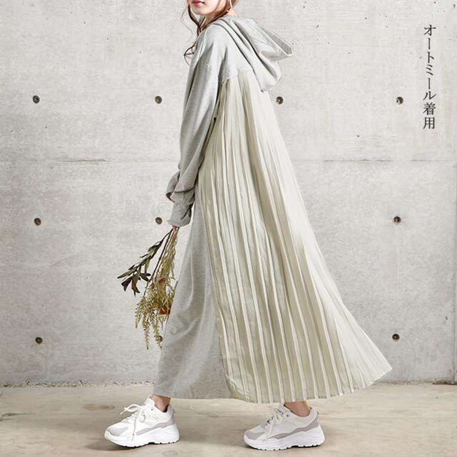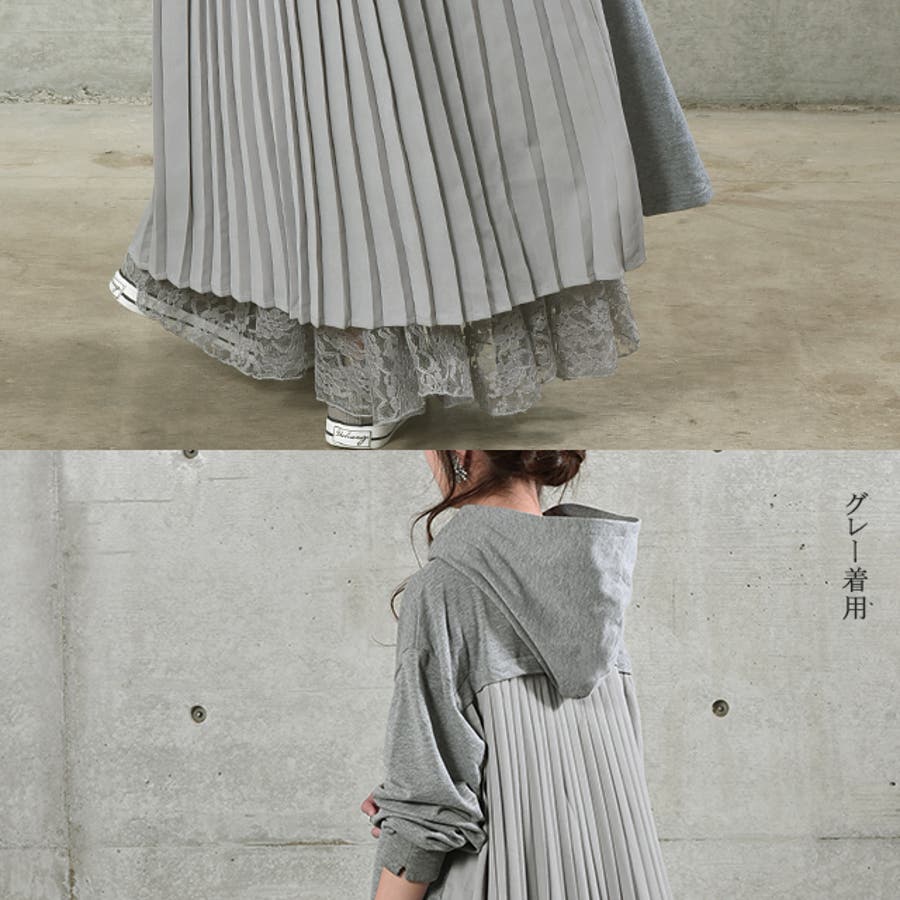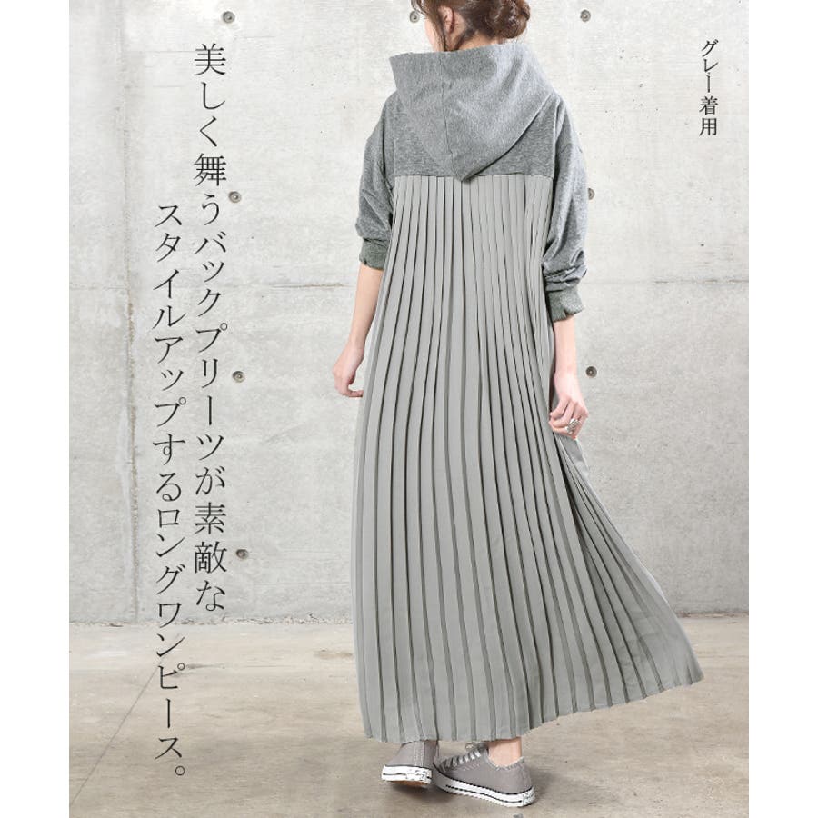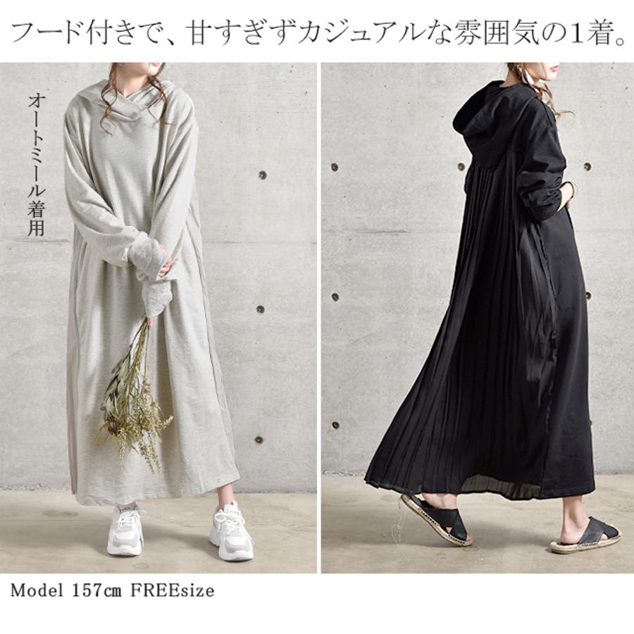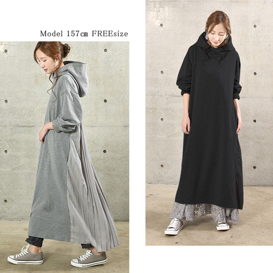 ワンピース 黒 長袖 パーカーワンピース ロング プリーツ ロングワンピース