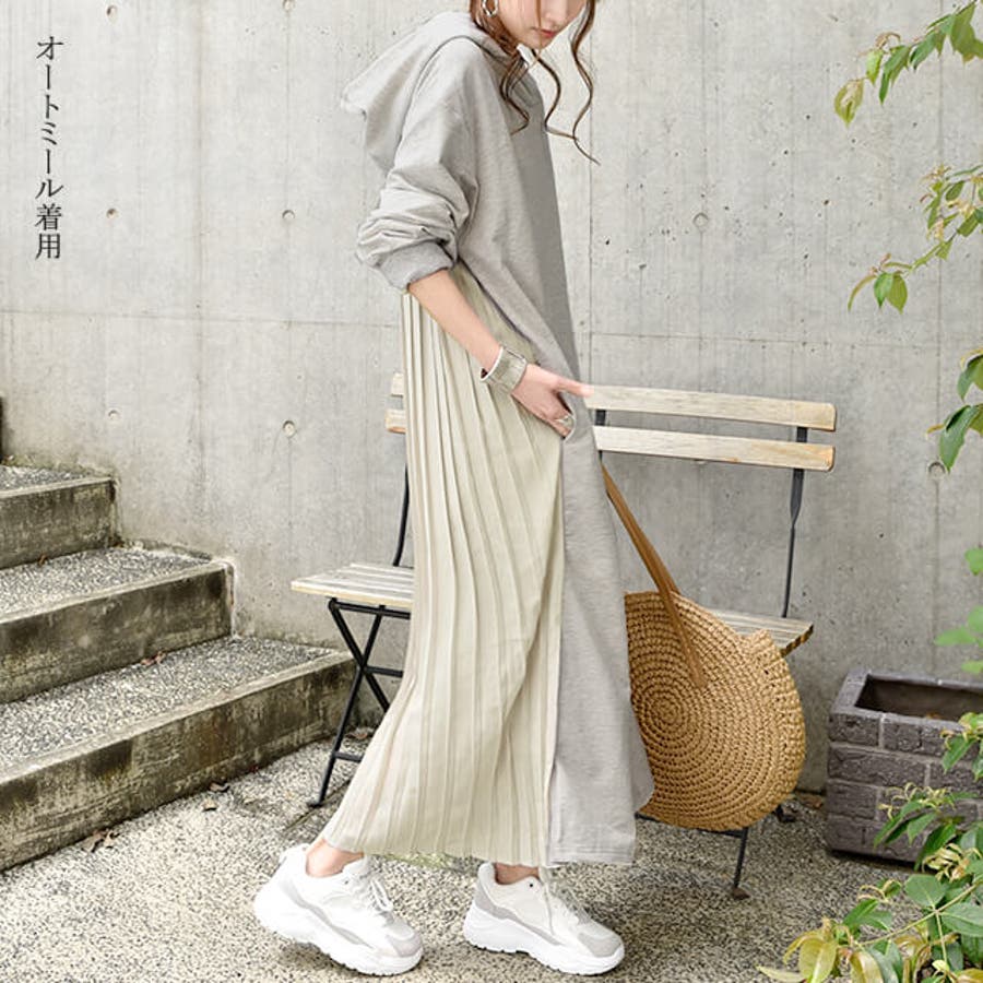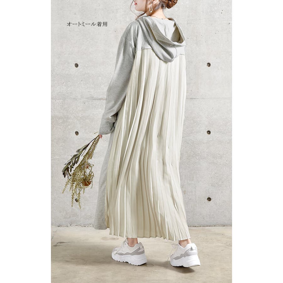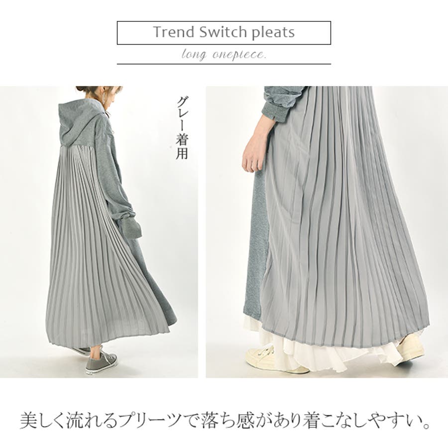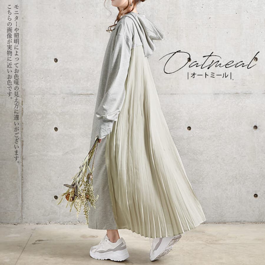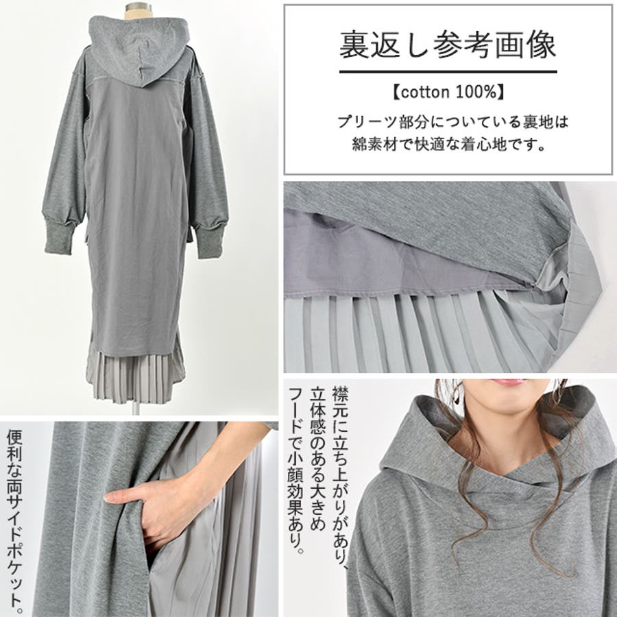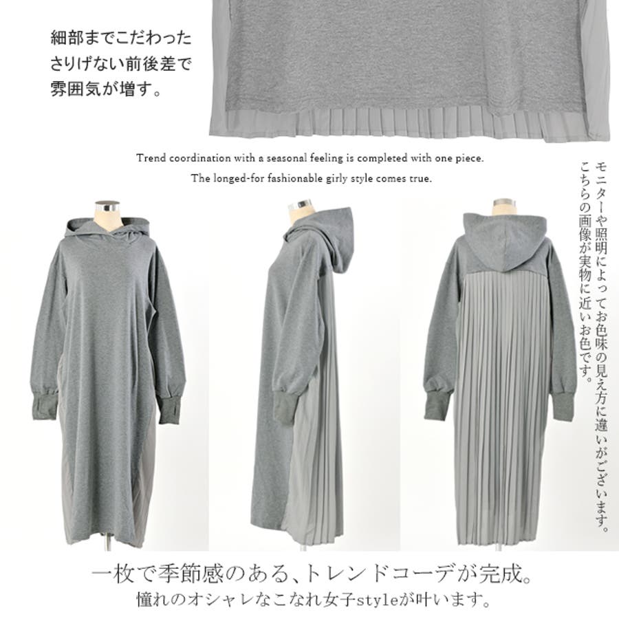 ワンピース 黒 長袖 パーカーワンピース ロング プリーツ ロングワンピース