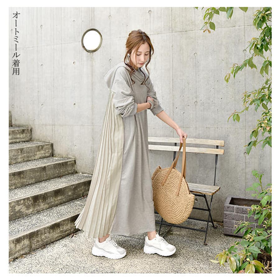 フードパーカーが付いているので甘すぎずカジュアルな雰囲気に。