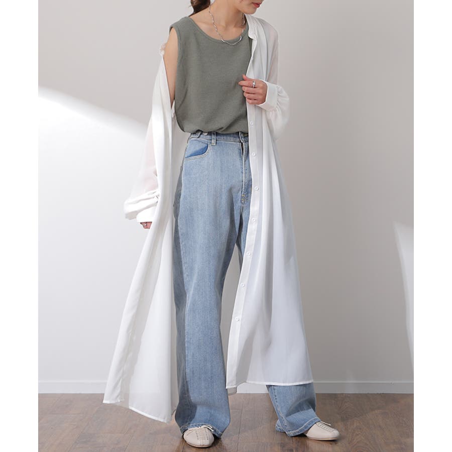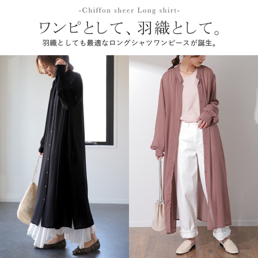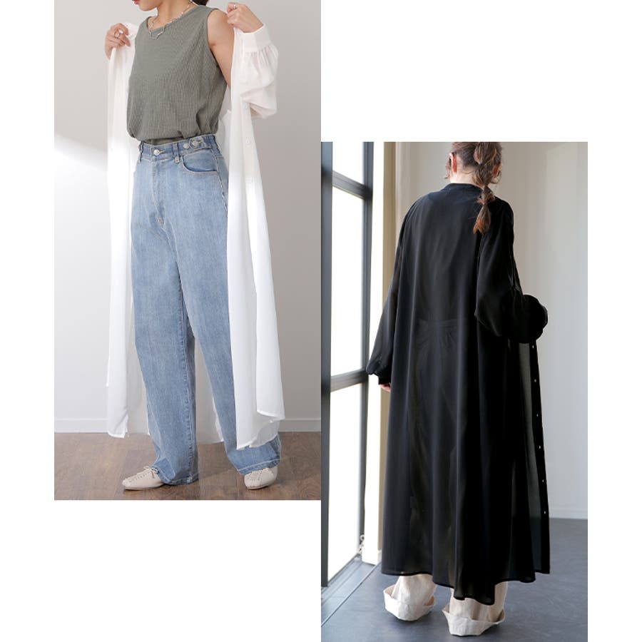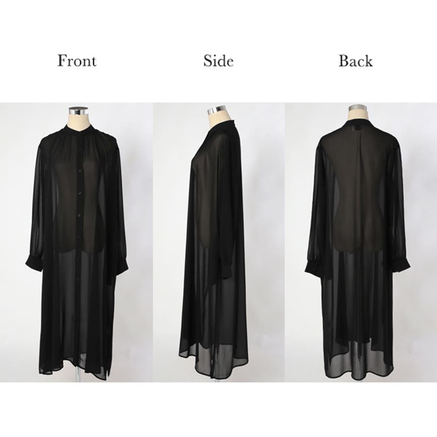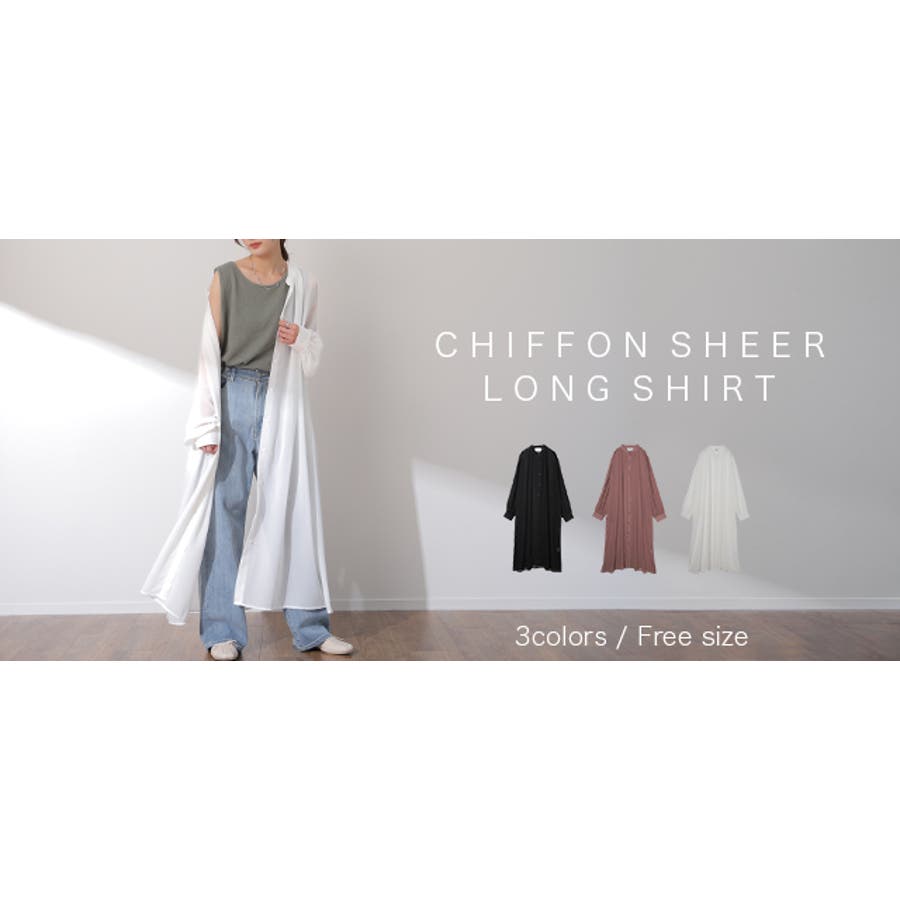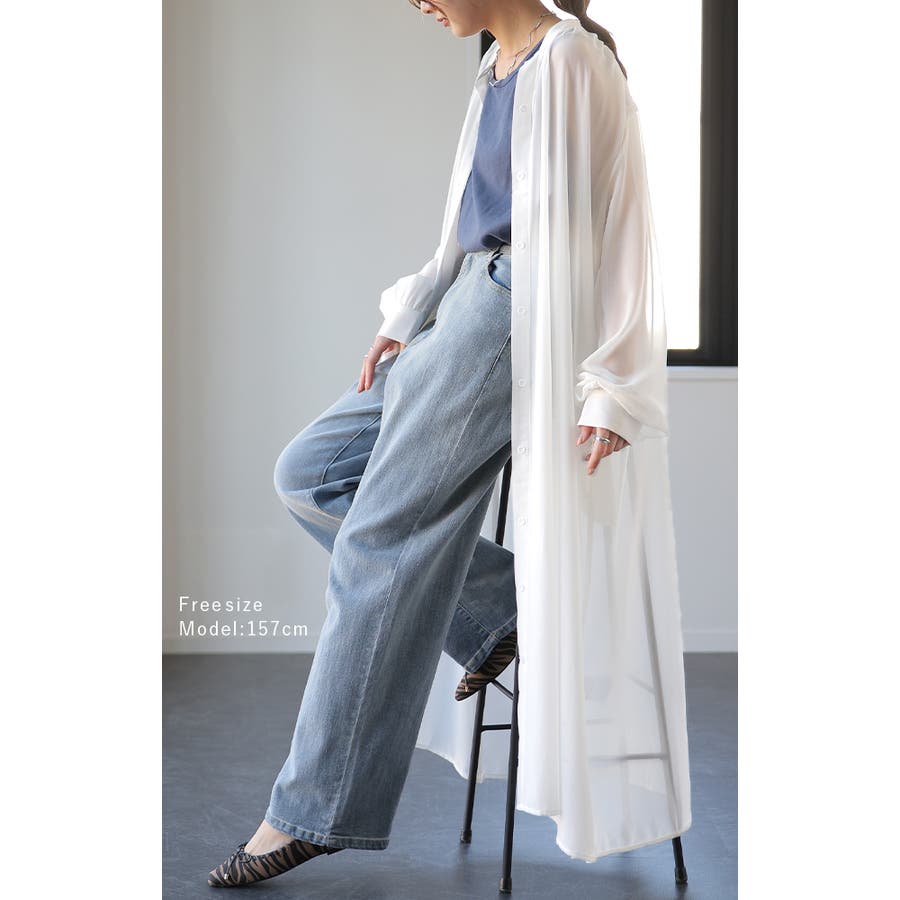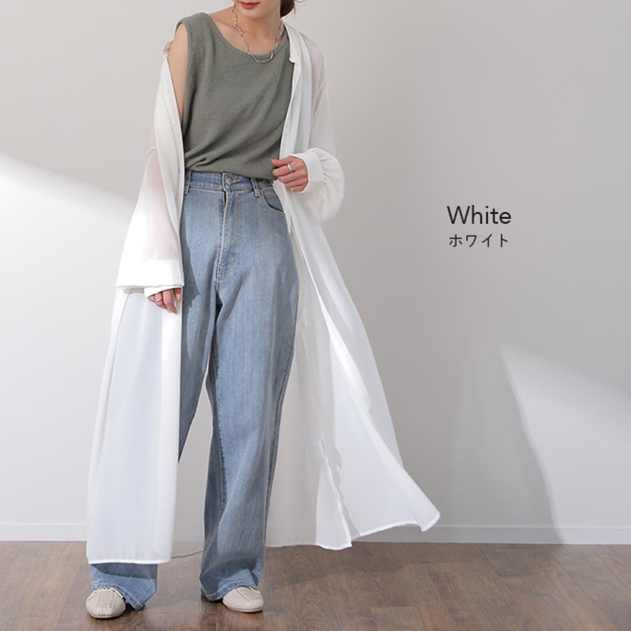 【ホワイト】シアーシャツ 長袖 ロング シフォン ロングシャツ ワンピース シャツ 羽織