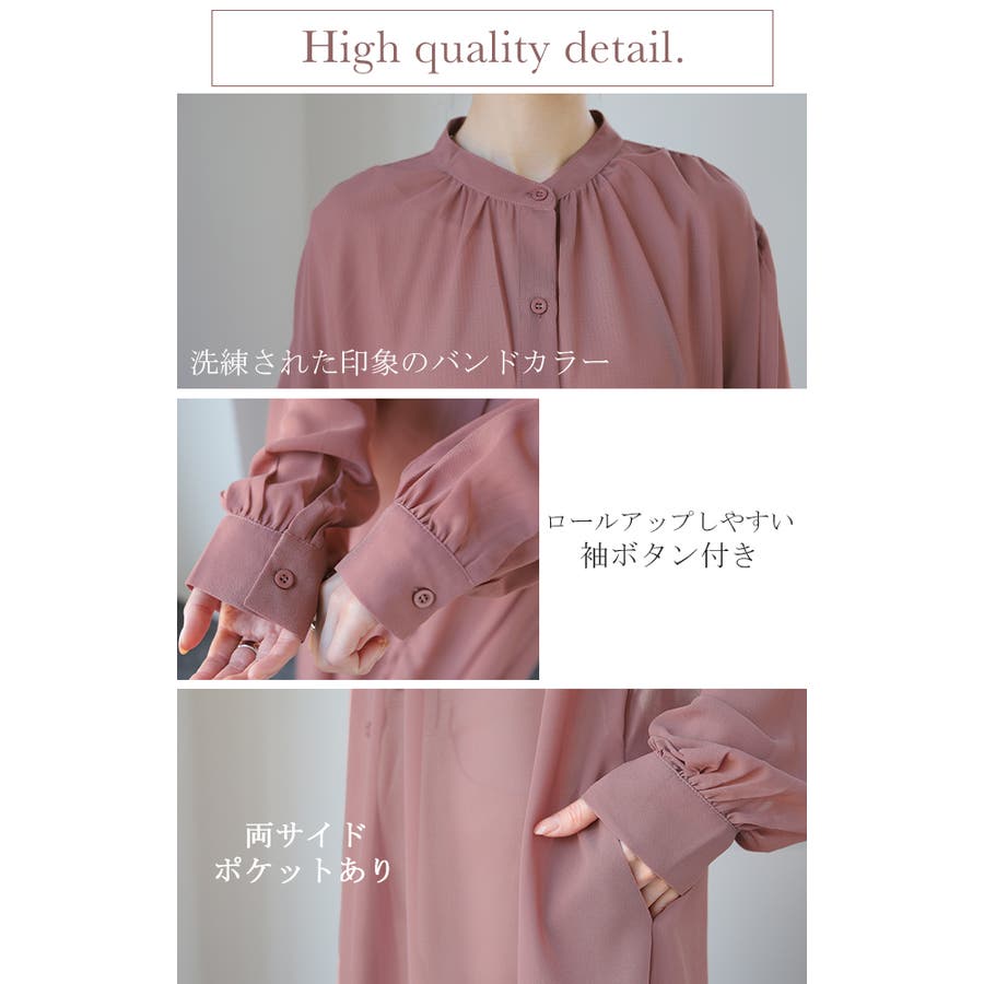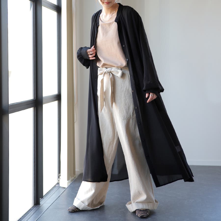 トレンドのシアー感に加えバンドカラー・サイドスリットと